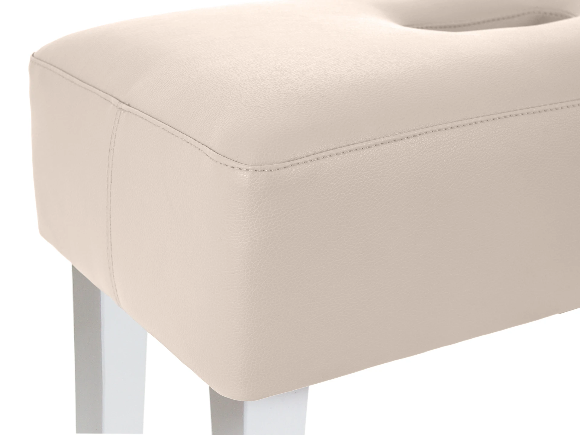 Табурет мягкий. Благодаря отверстию в верхней части табурет легко перемещать. Можно использовать под ноги, которые устают в течение рабочего дня или поставить в коридоре для удобства при обувании.