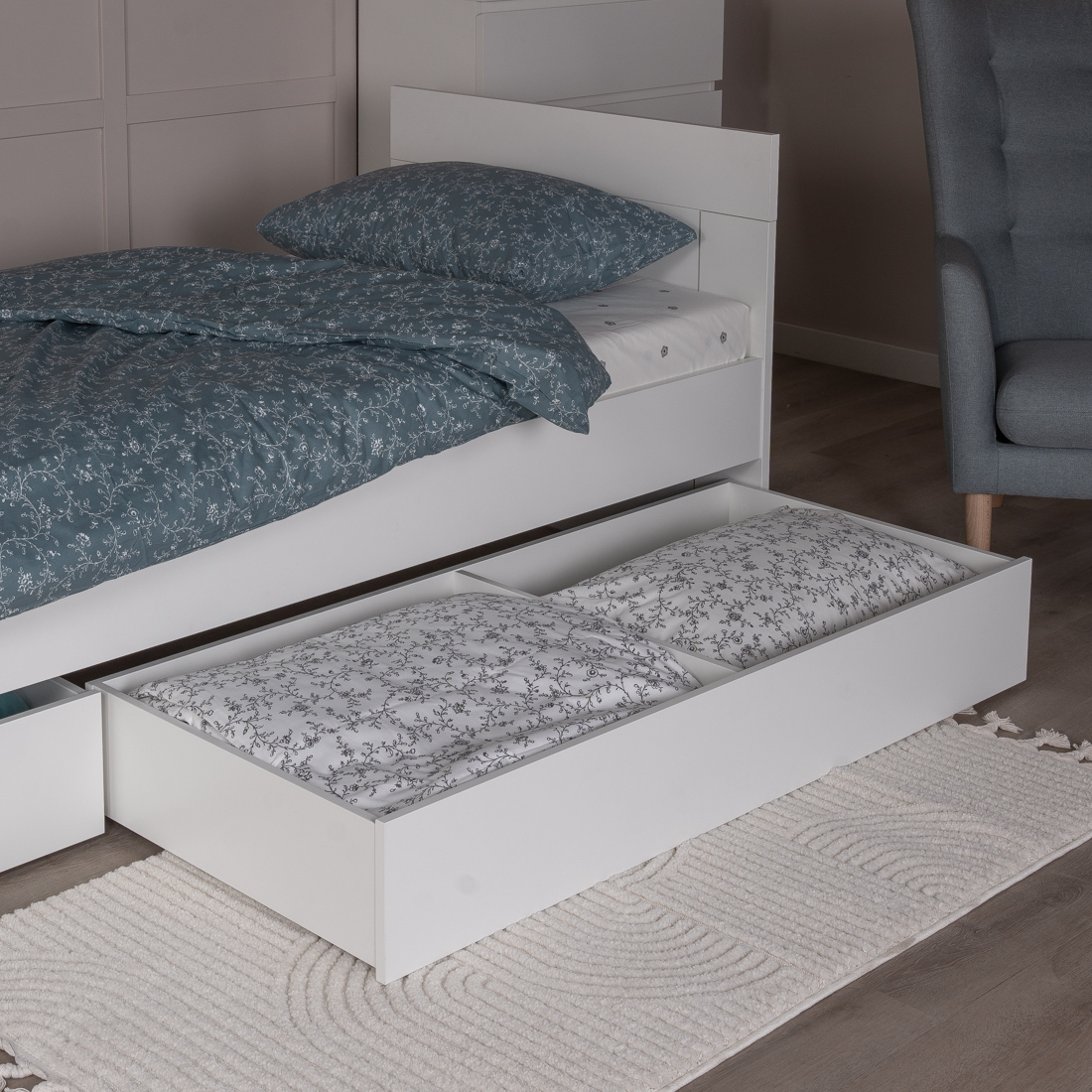Дополнительная информация по мебели — ОРИОН ящик под кровать выкатной 140 белый RU