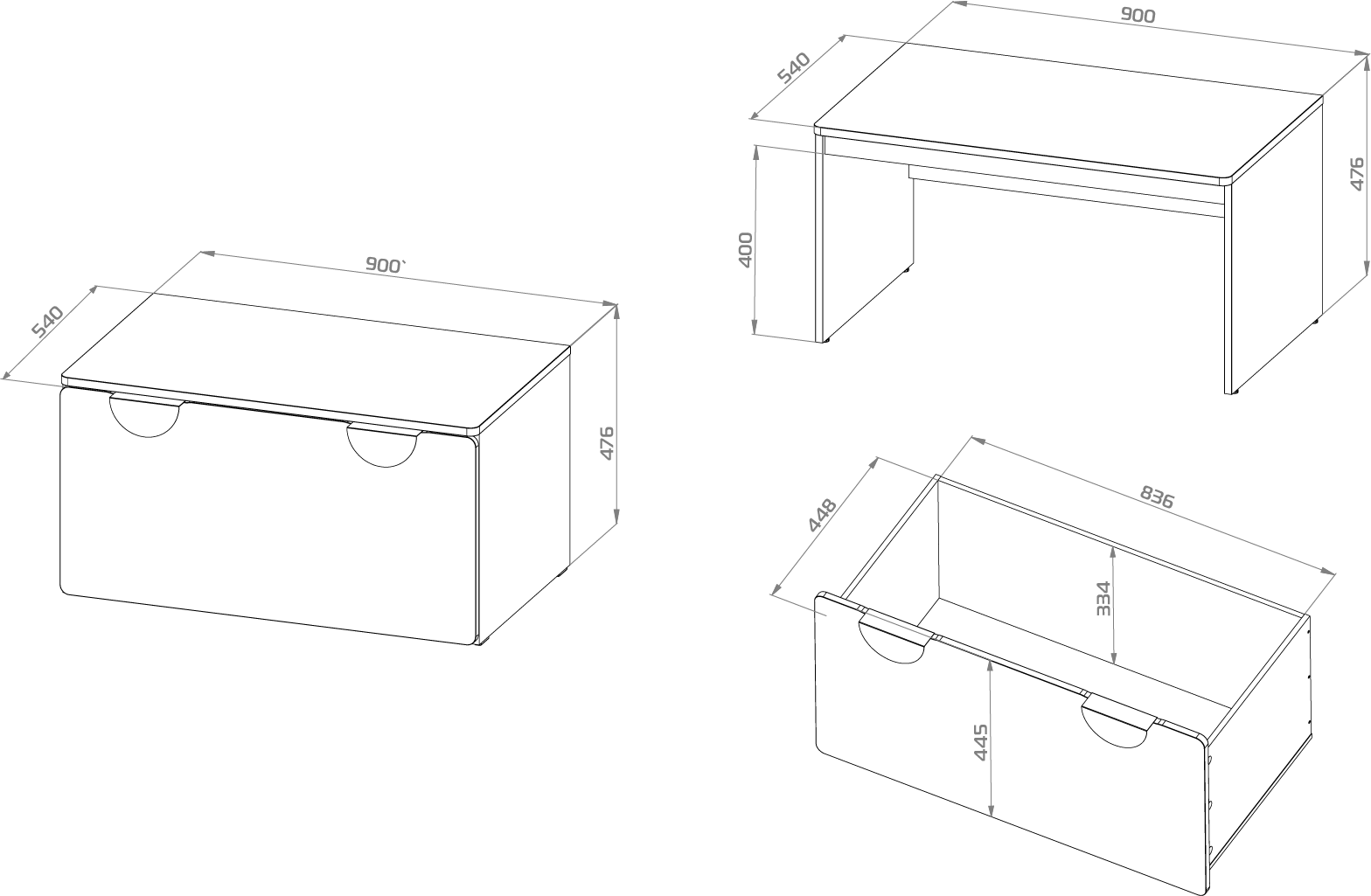 ПИКСИ ящик выкатной 90х48х46 под скамью, робкий подснежник