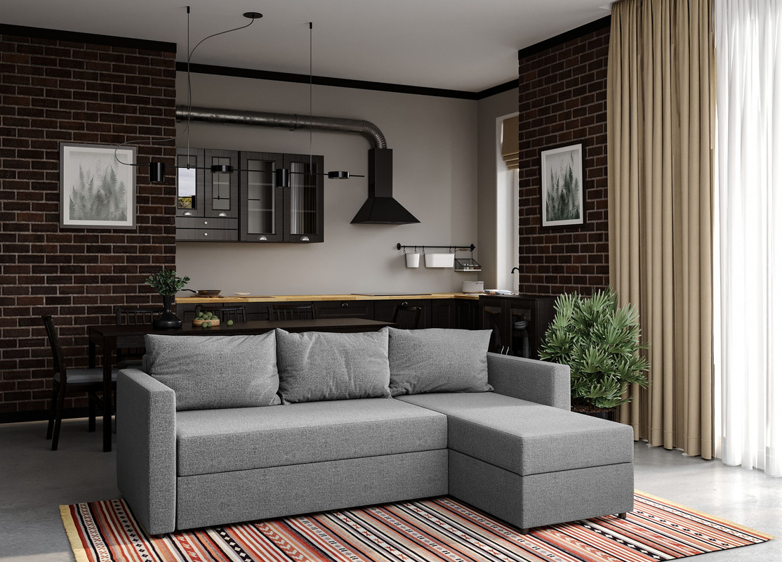 Диван трехместный с угловой секцией Вало КП Malmo 90 (grey) SA