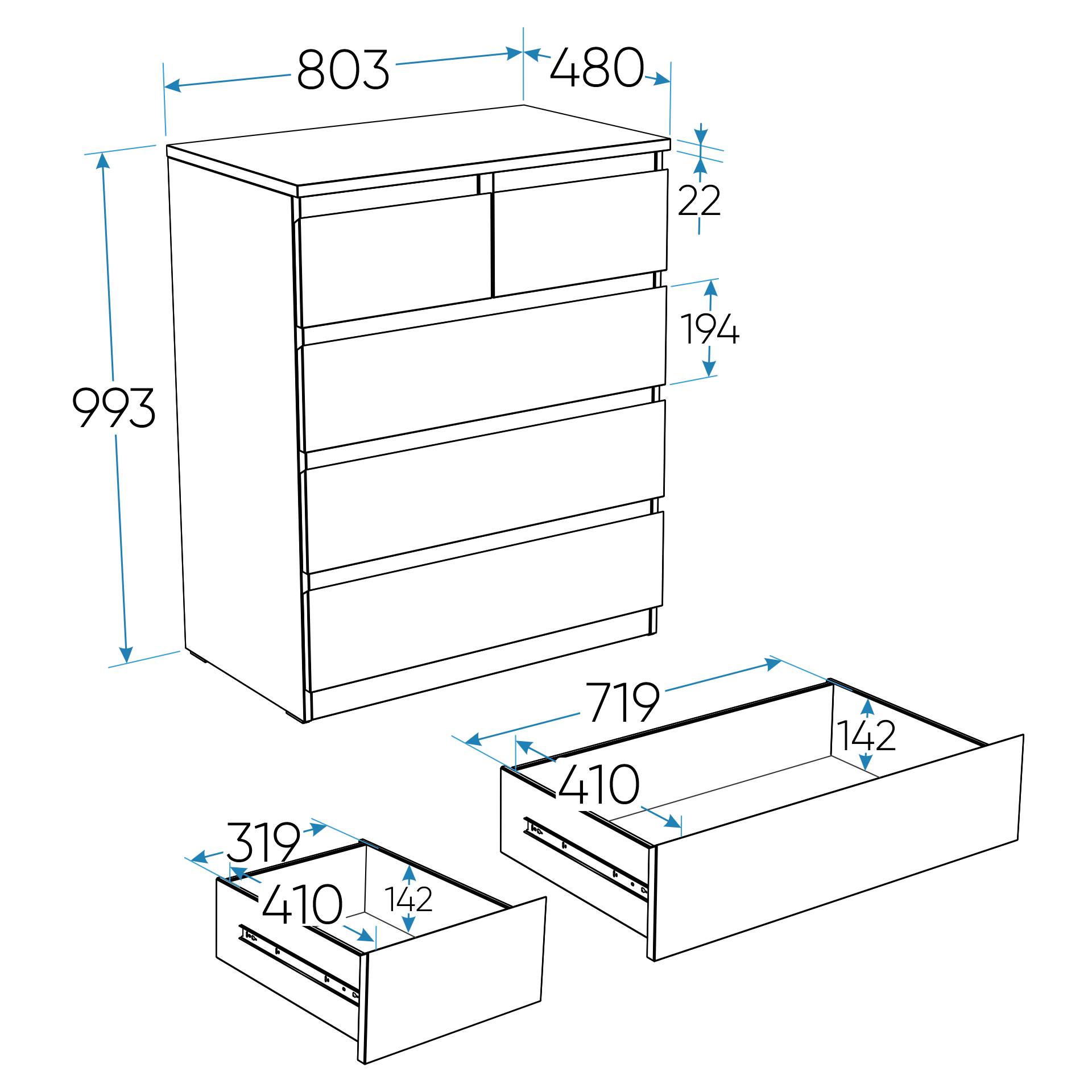 Дополнительная информация по мебели — МАЛЬТА комод 3+2 ящика 80х99 белый RU