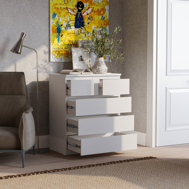Дополнительная информация по мебели — MALTA комод 3+2 ящика без доводчиков 80х99 белый RU