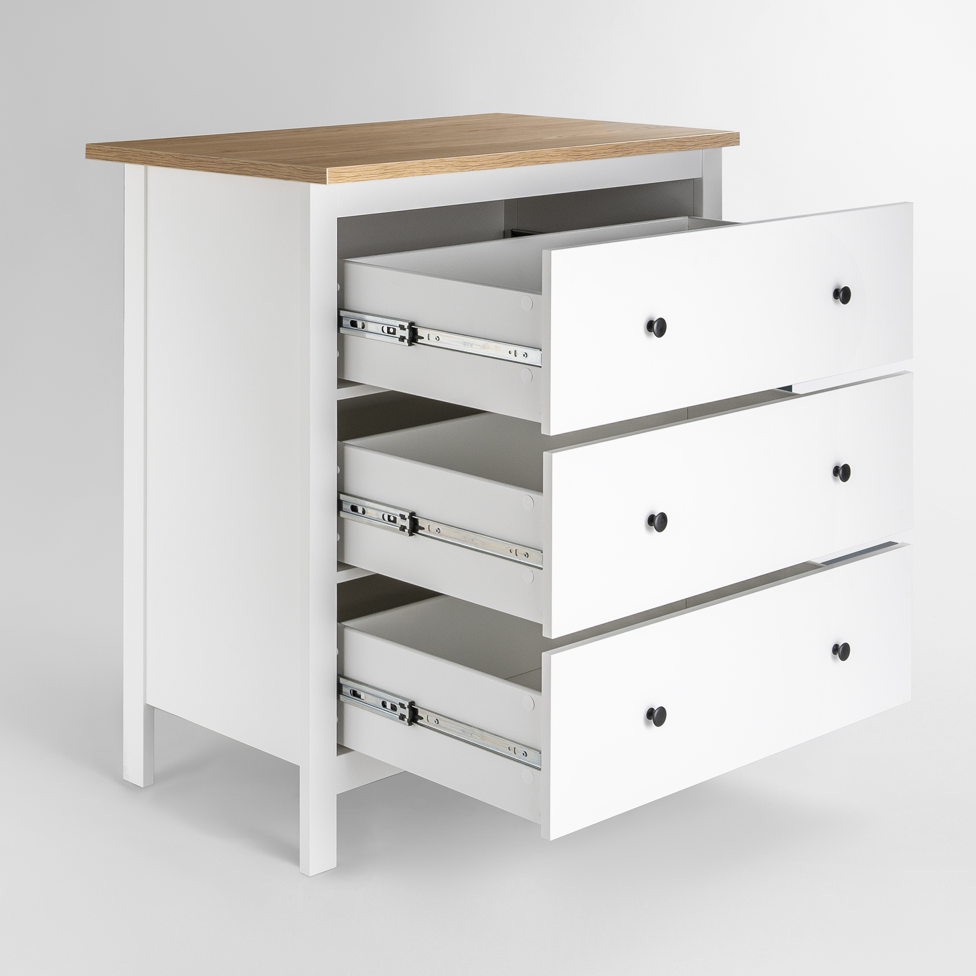 Дополнительная информация по мебели — САГА комод 3 ящика белый/ясень
