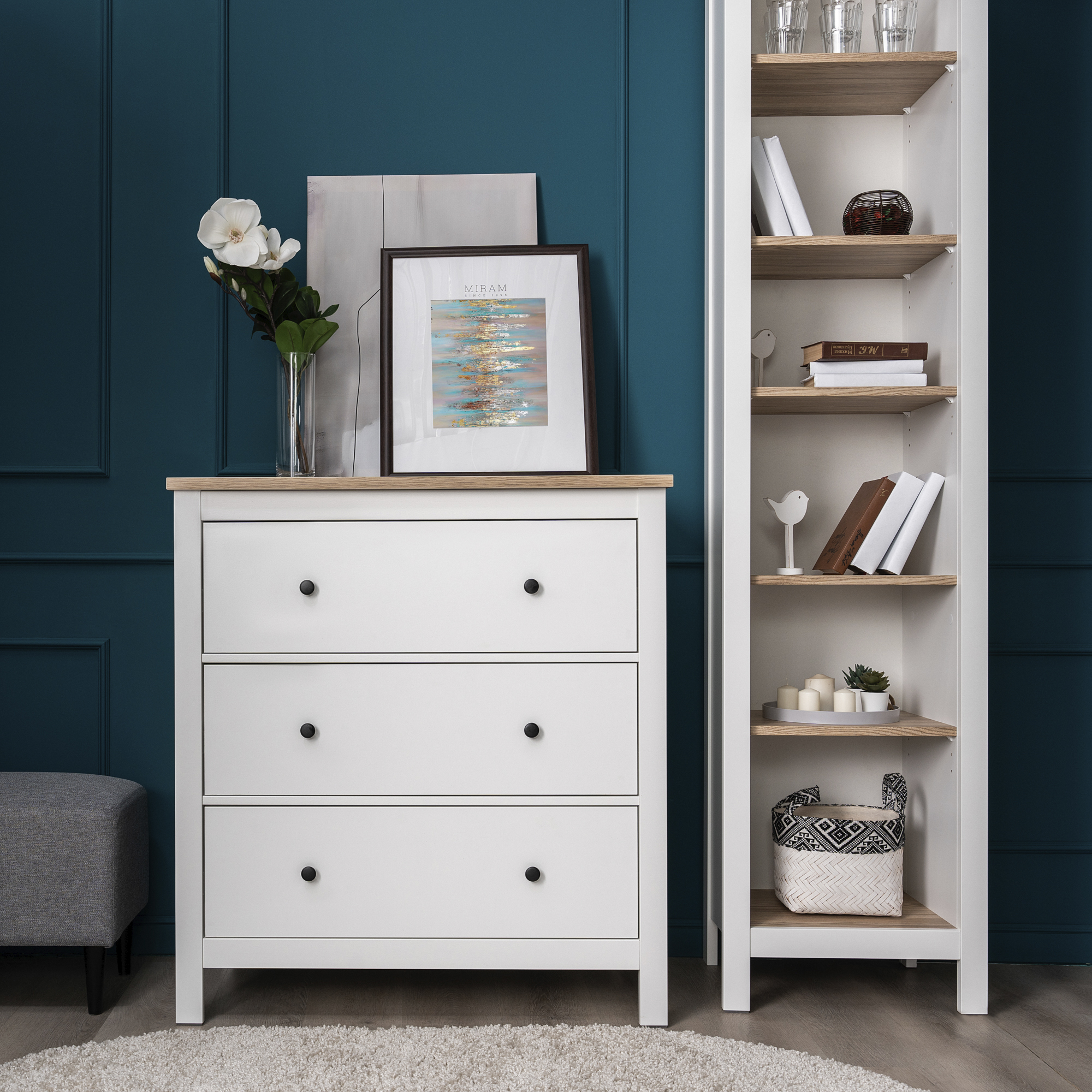 САГА комод 3 ящика белый/ясень