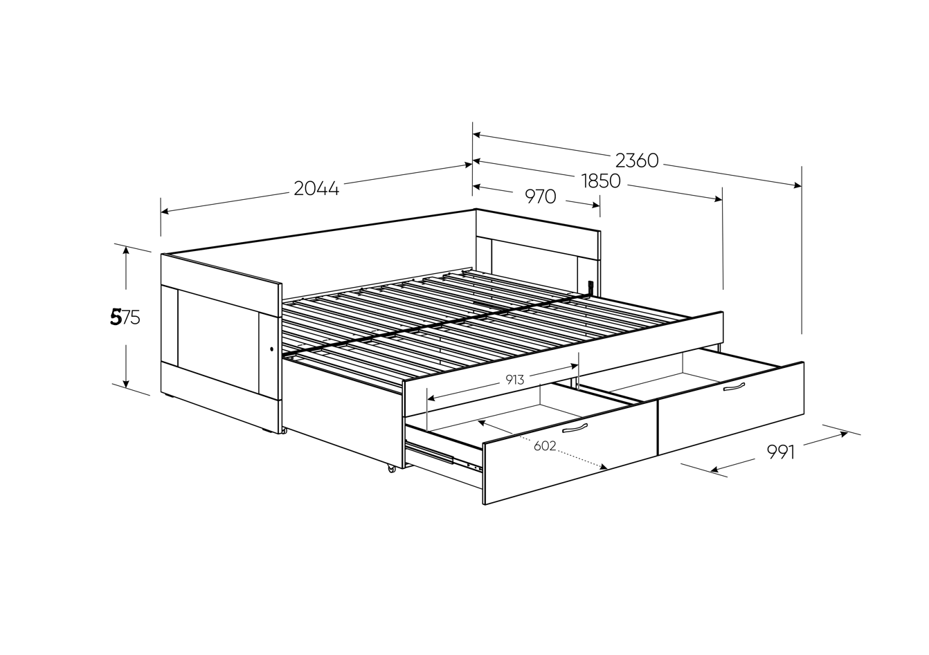Дополнительная информация по мебели — СИРИУС кровать раздвижная с ящиками 90х200 сонома RU