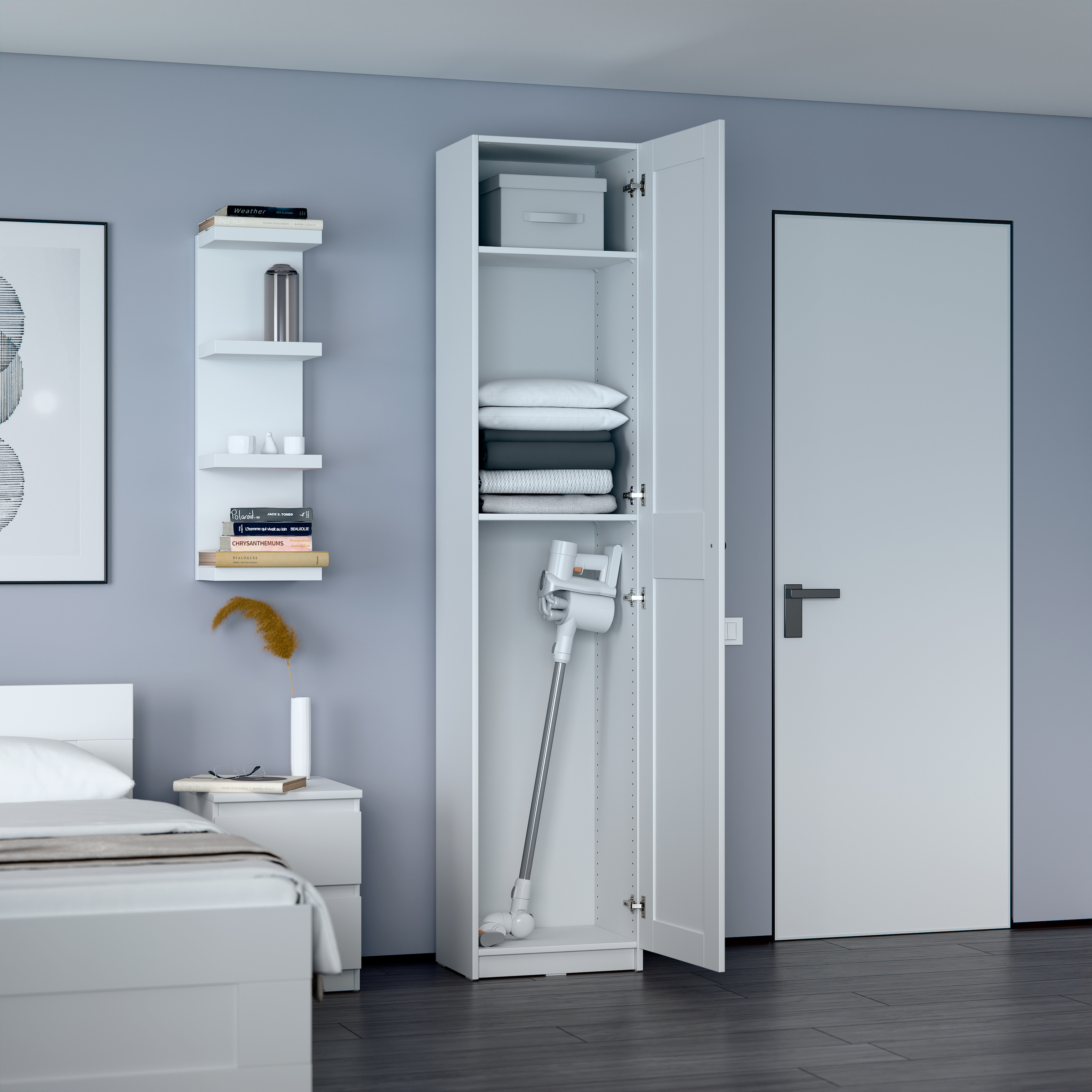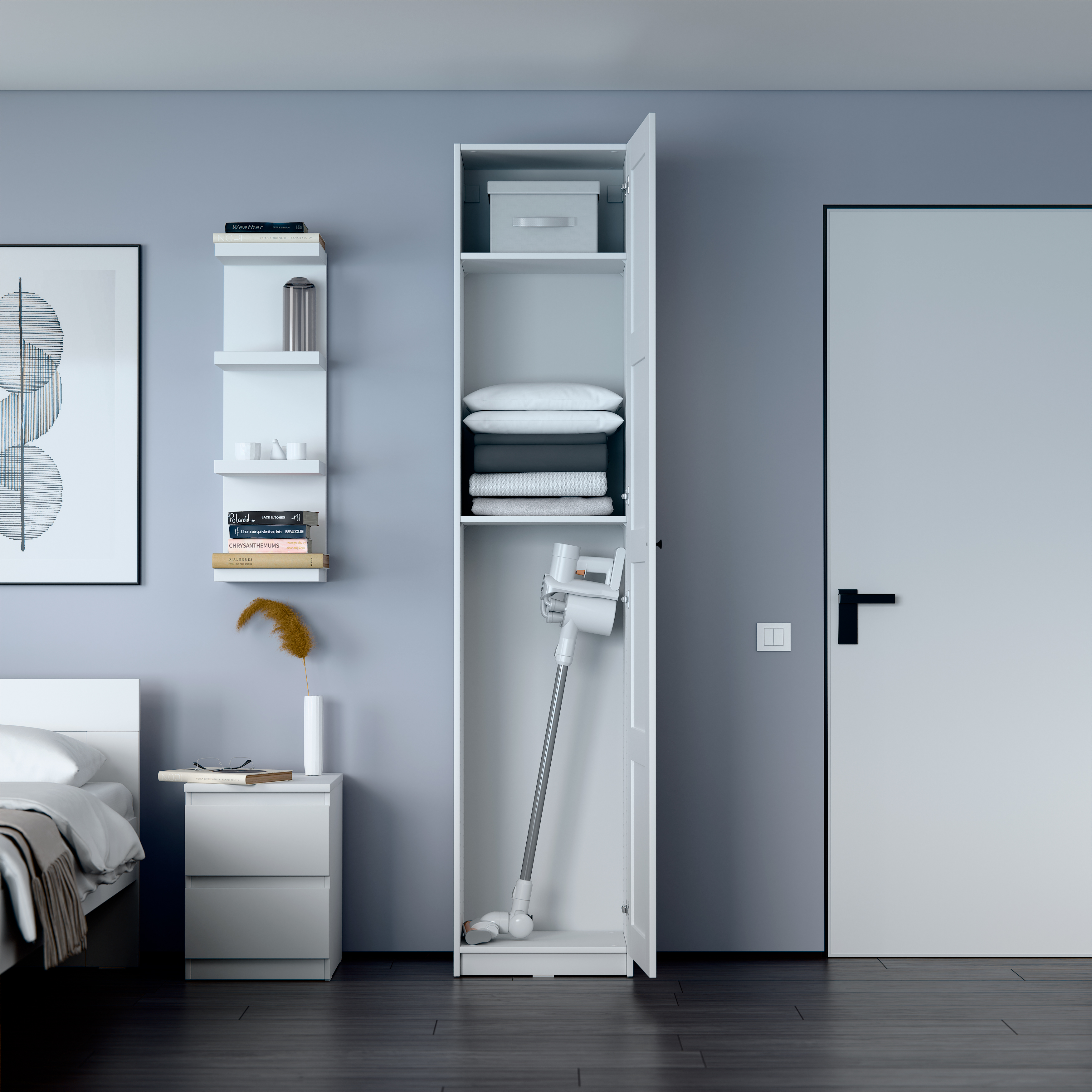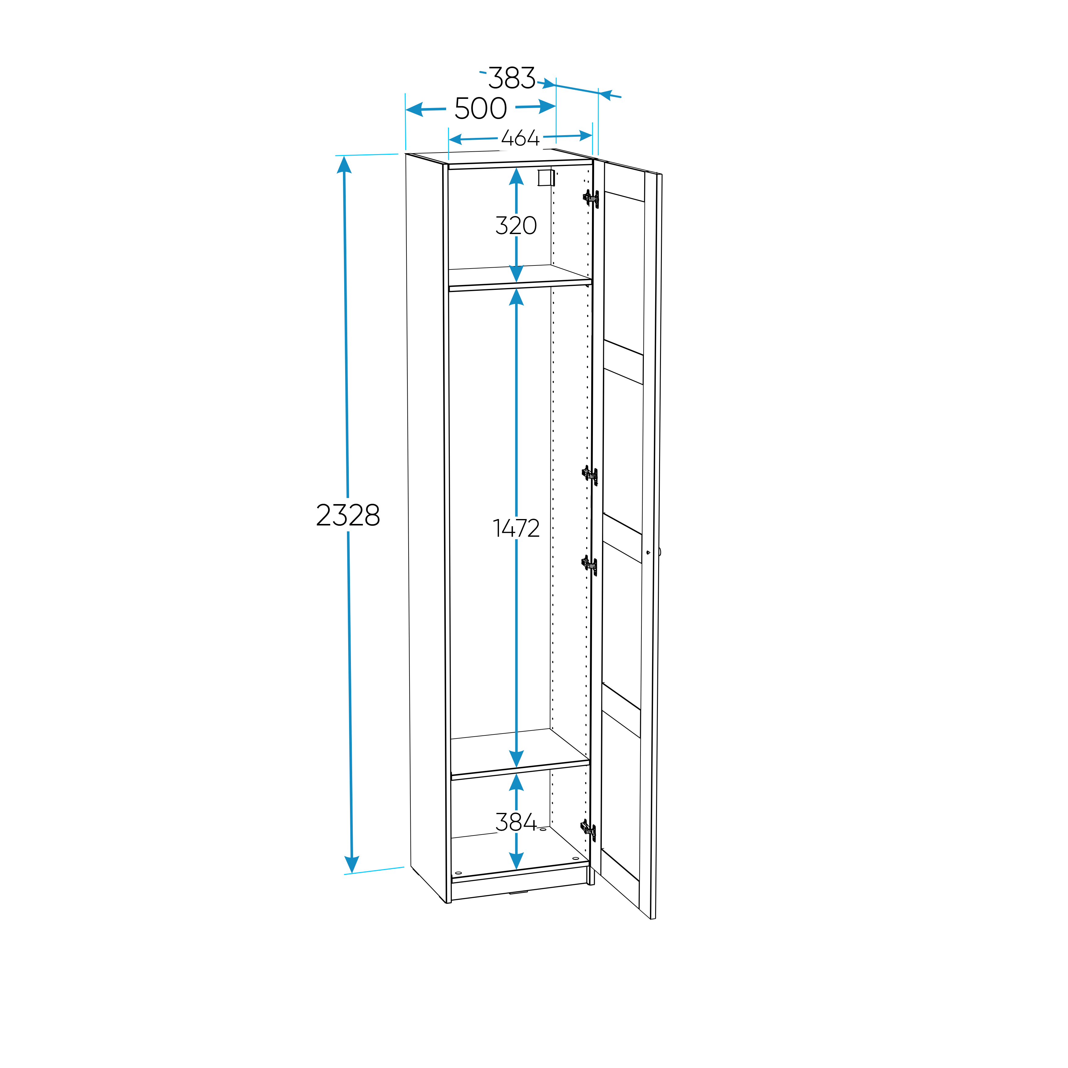 Дополнительная информация по мебели — МАКС шкаф 1 дверь 50х38х233 белый RU