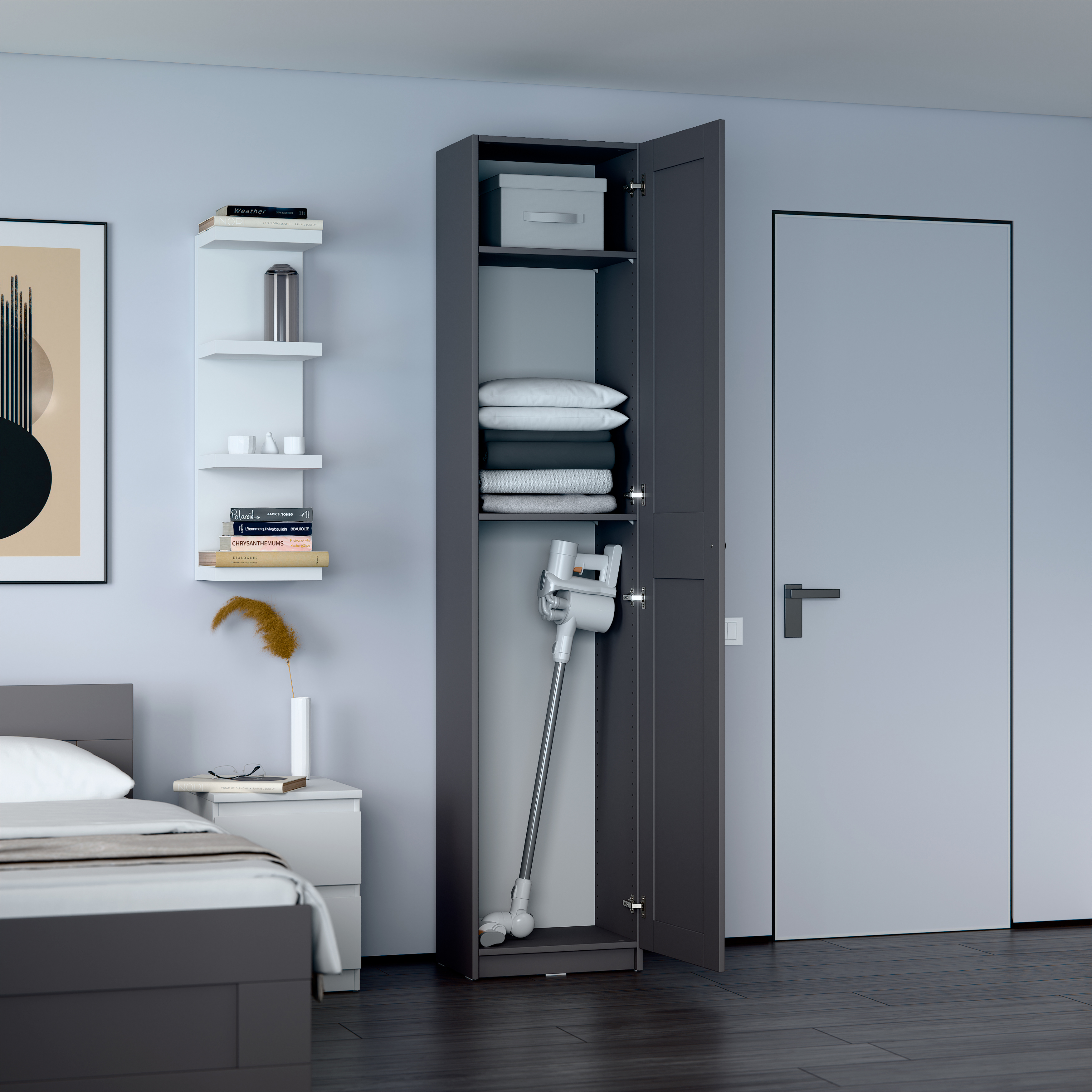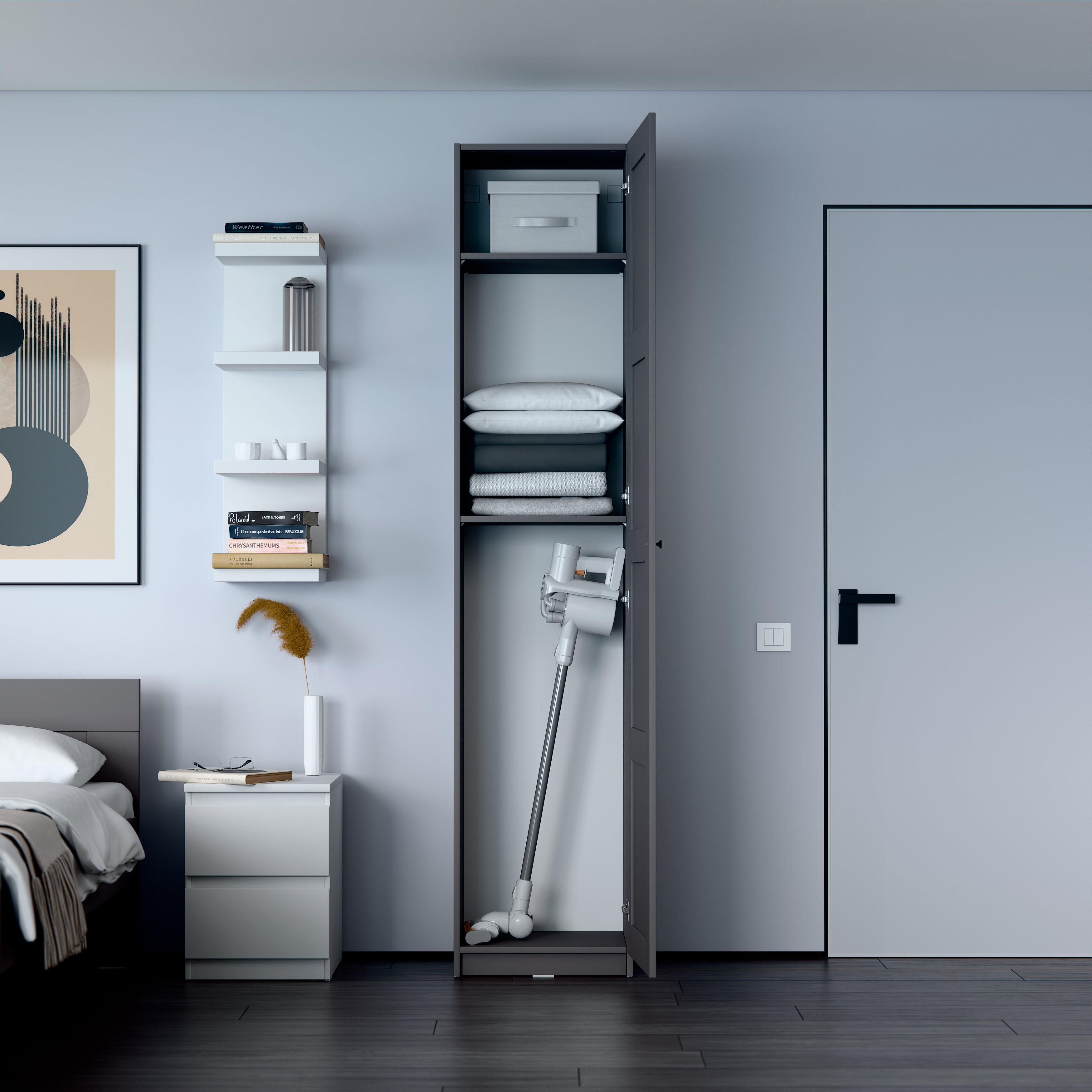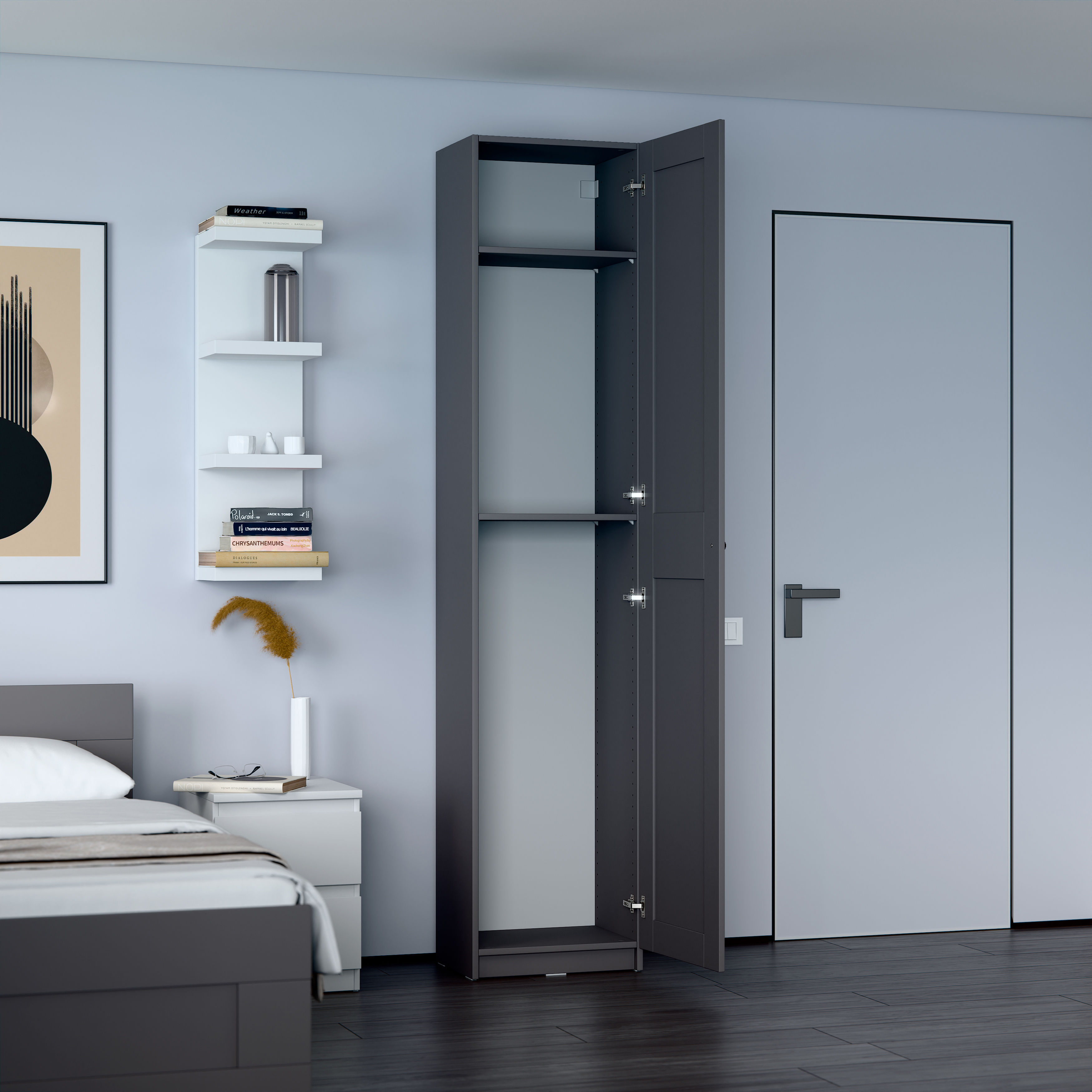 Дополнительная информация по мебели — МАКС шкаф 1 дверь 50х38х233 серый RU