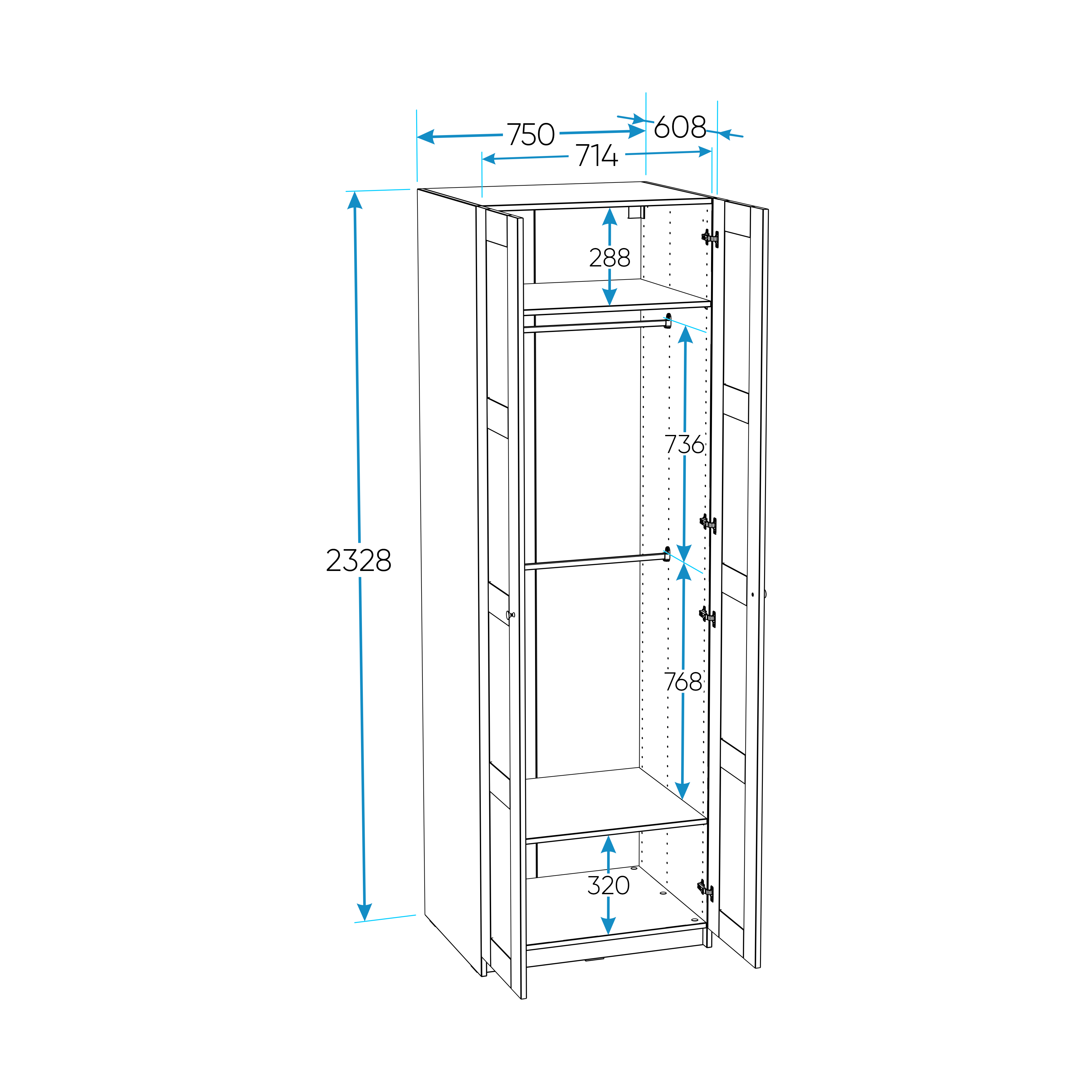Дополнительная информация по мебели — МАКС шкаф 2 двери 75х61х233 белый RU