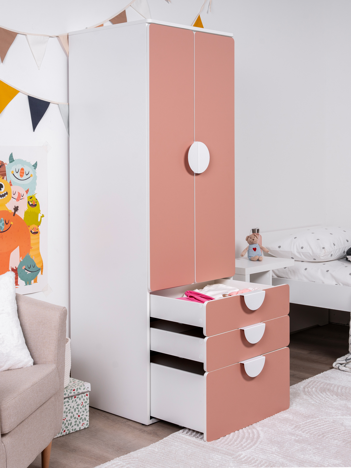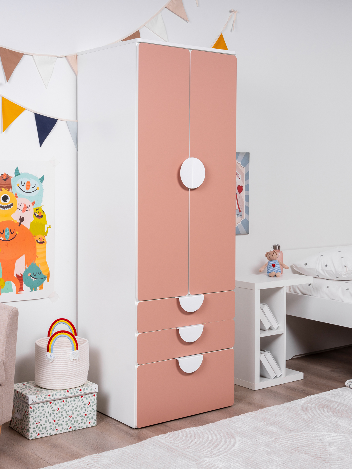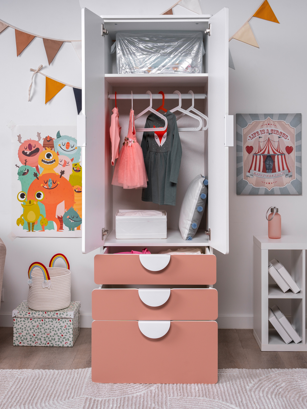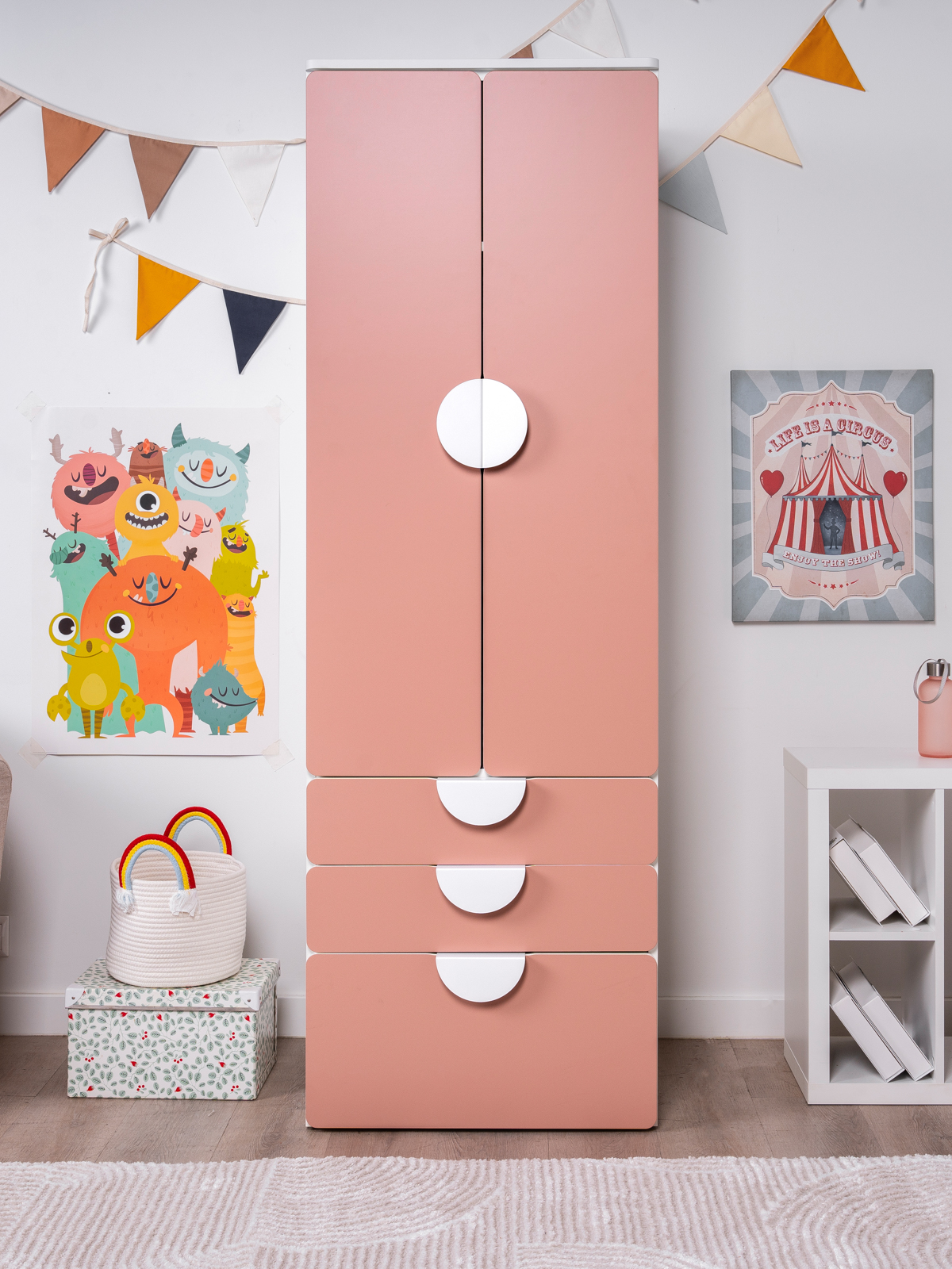 ПИКСИ шкаф распашной с 2 дверьми, 3 ящиками и полкой 60x57x183, мечтательный пион