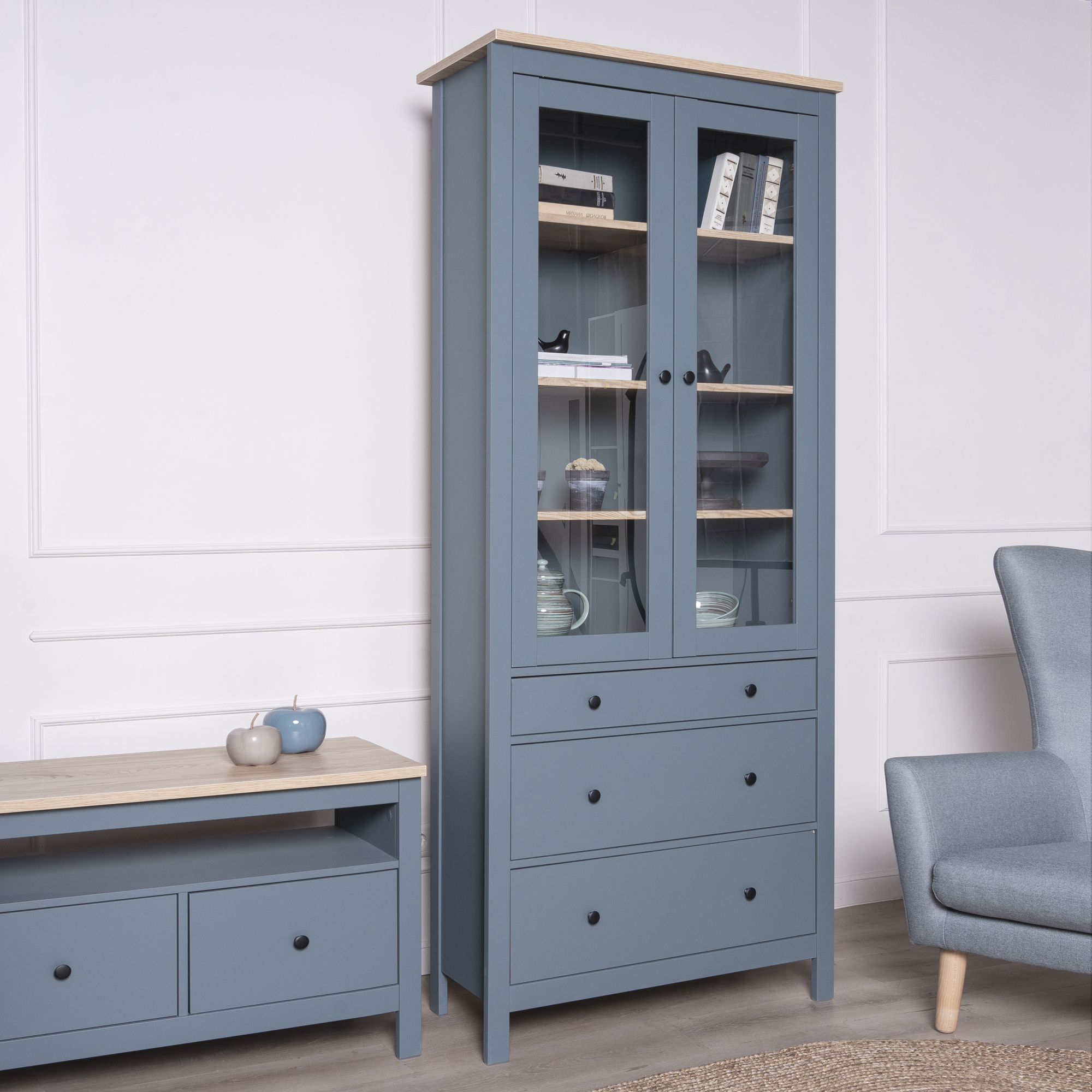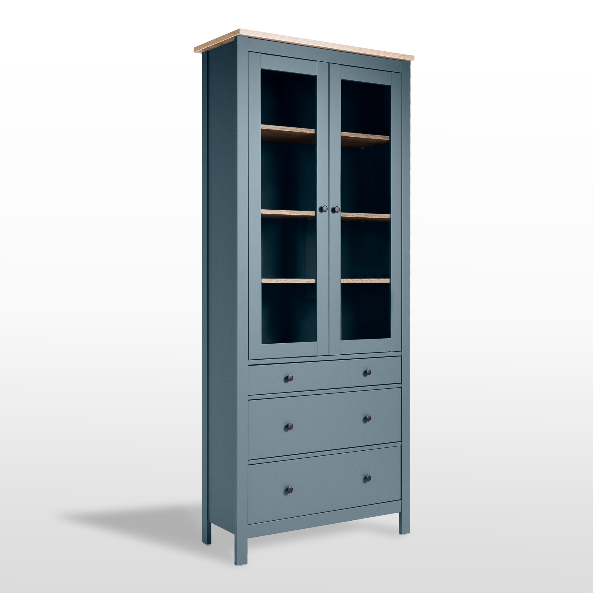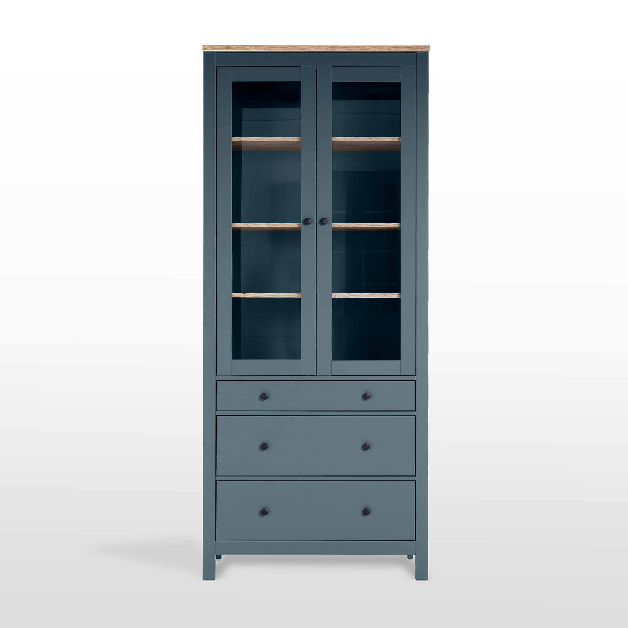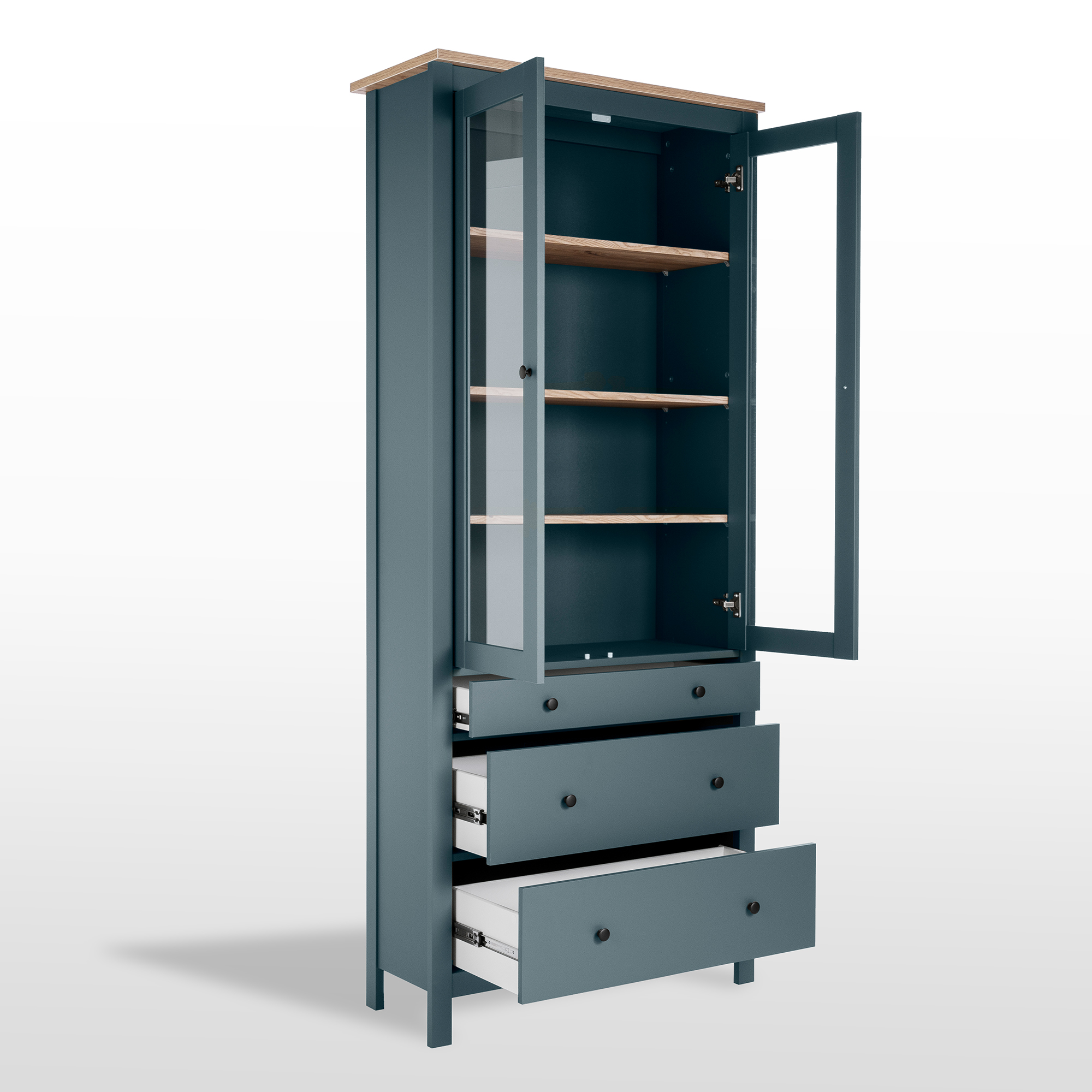 САГА шкаф с витриной 90 темно-бирюзовый/ясень RU