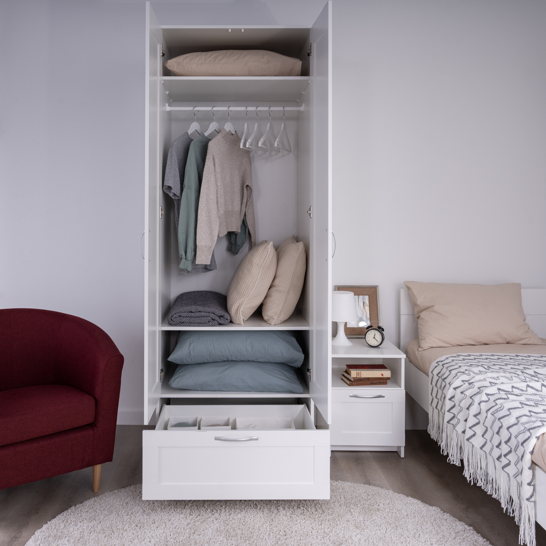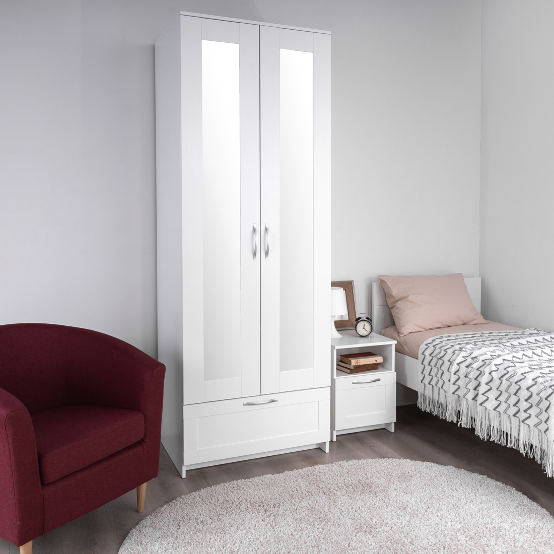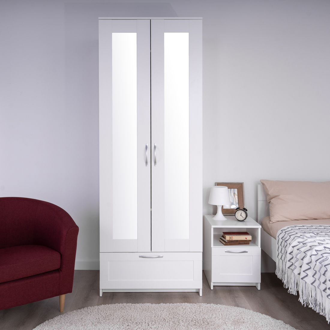 Дополнительная информация по мебели — СИРИУС шкаф 2 двери и 1 ящик 78х59х220 белый RU (с 2 зеркалами)
