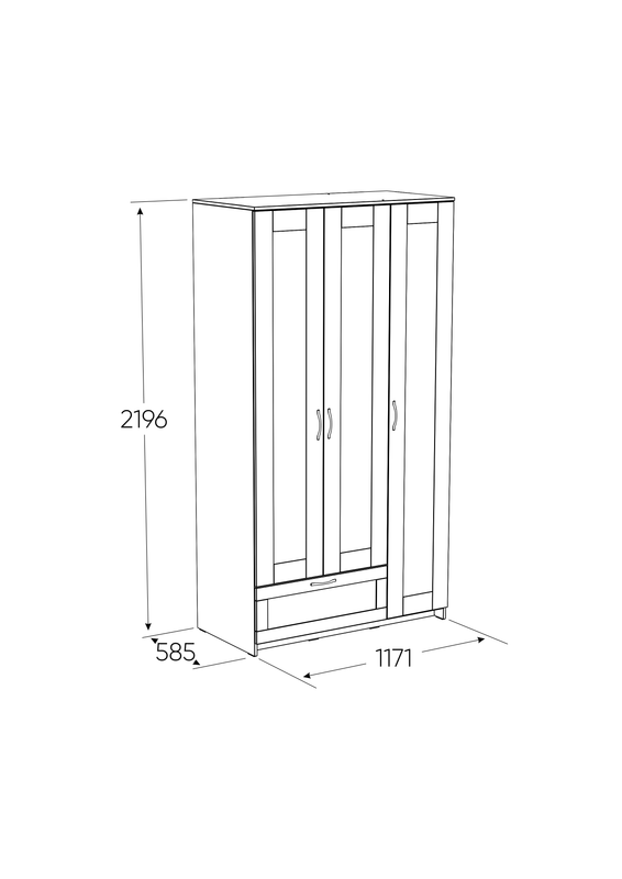Дополнительная информация по мебели — СИРИУС шкаф 3 двери и 1 ящик 117х59х220 белый RU