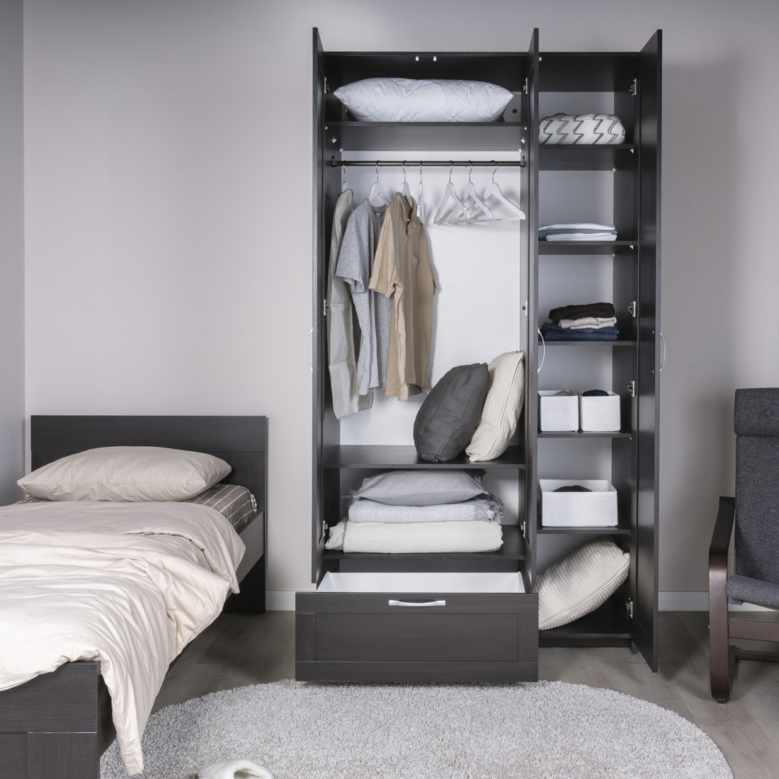 Дополнительная информация по мебели — СИРИУС шкаф 3 двери и 1 ящик 117х59х220 Дуб Венге RU (с 1 зеркалом)