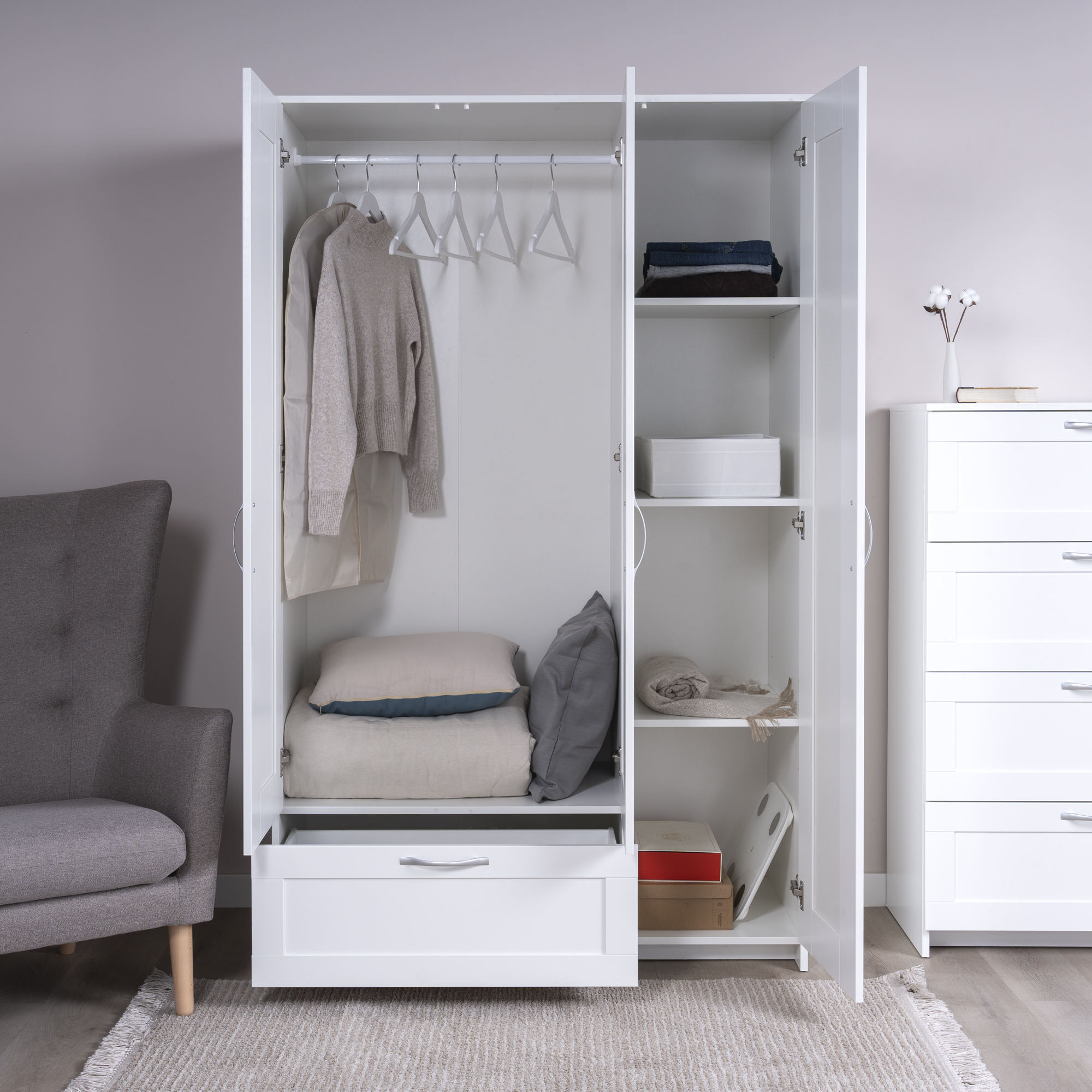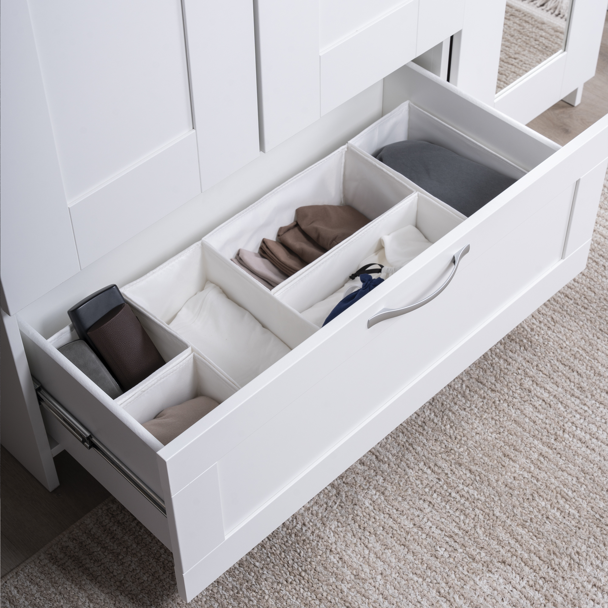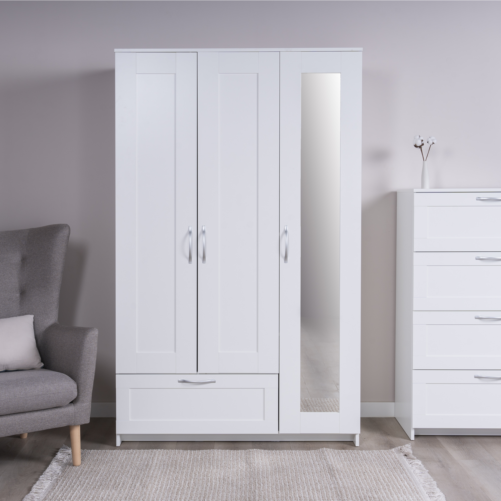 Дополнительная информация по мебели — СИРИУС шкаф комбинированный "3 двери и 1 ящик белый RU" (с 1 зеркалом)