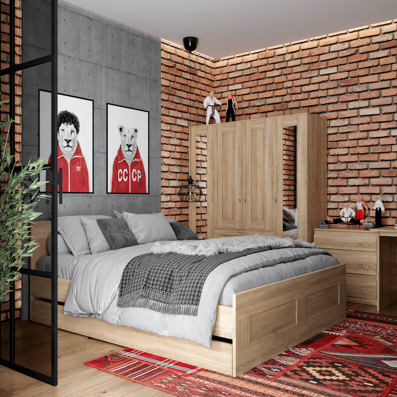 СИРИУС шкаф комбинированный "4 двери и 2 ящика сонома RU (с 2 зеркалами)"