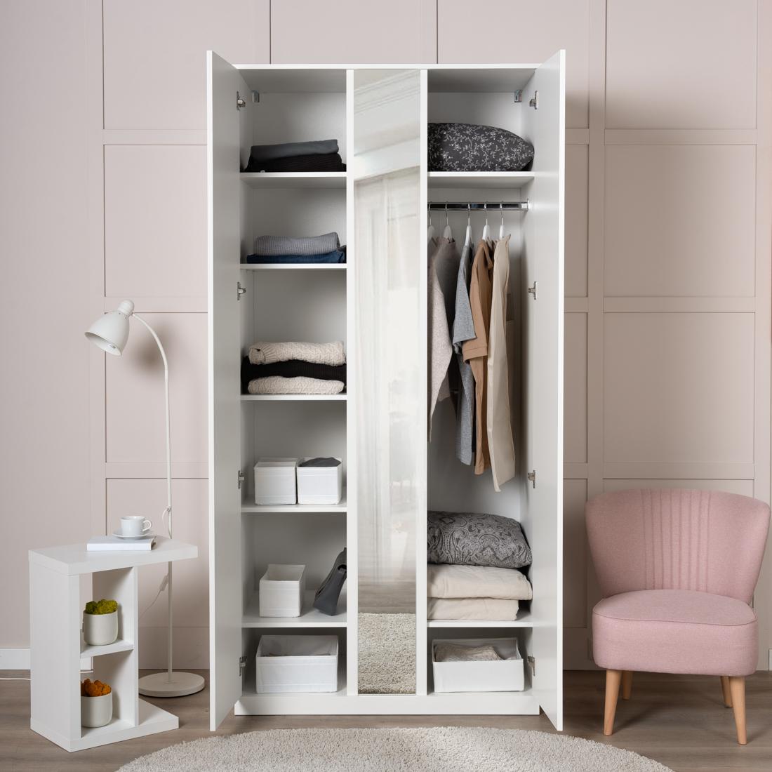 Варма Стор 105 шкаф распашной с зеркалом 222х105х57, белый