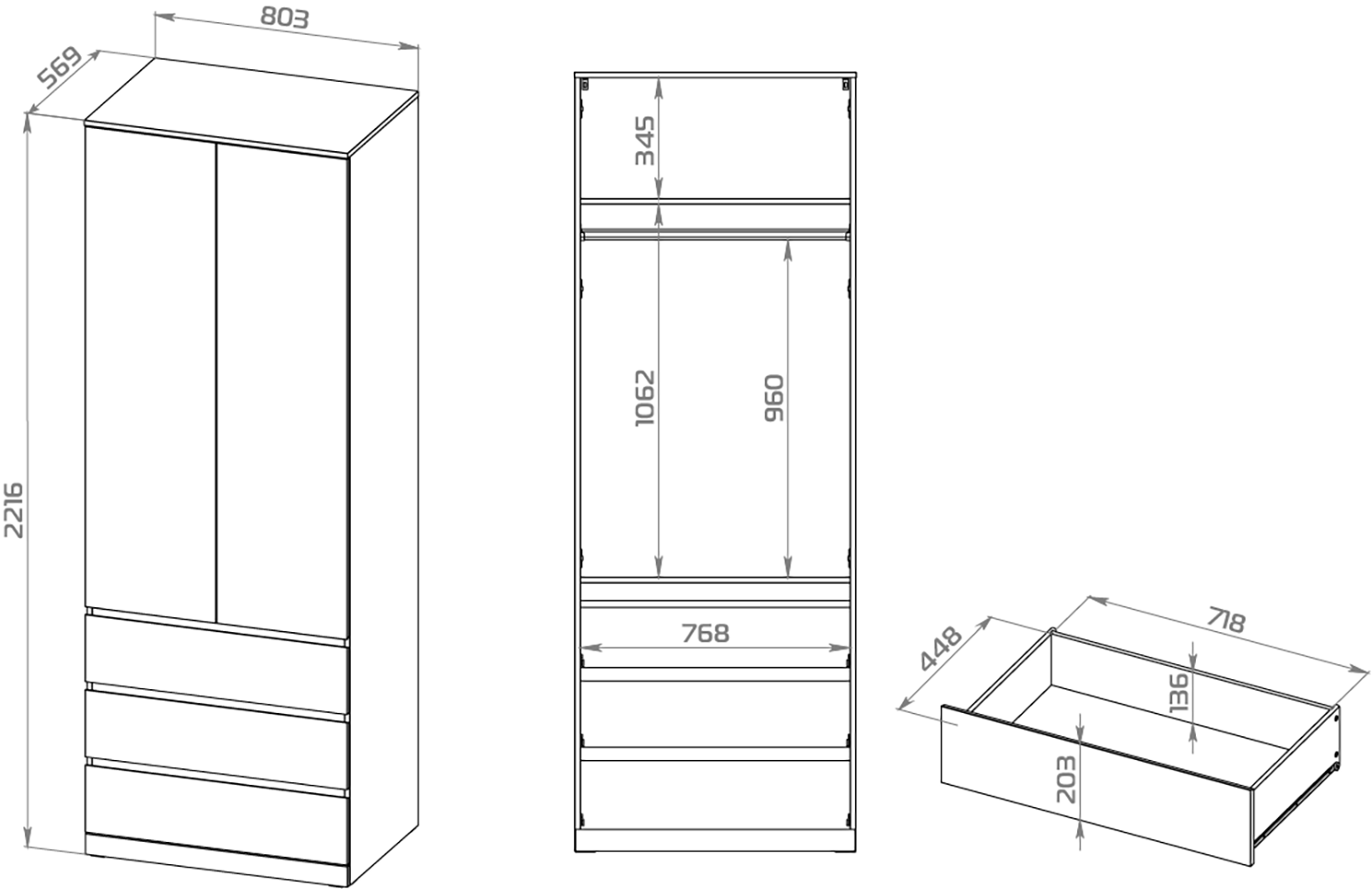 Дополнительная информация по мебели — Варма Стор 80 шкаф распашной 222х80х57, белый