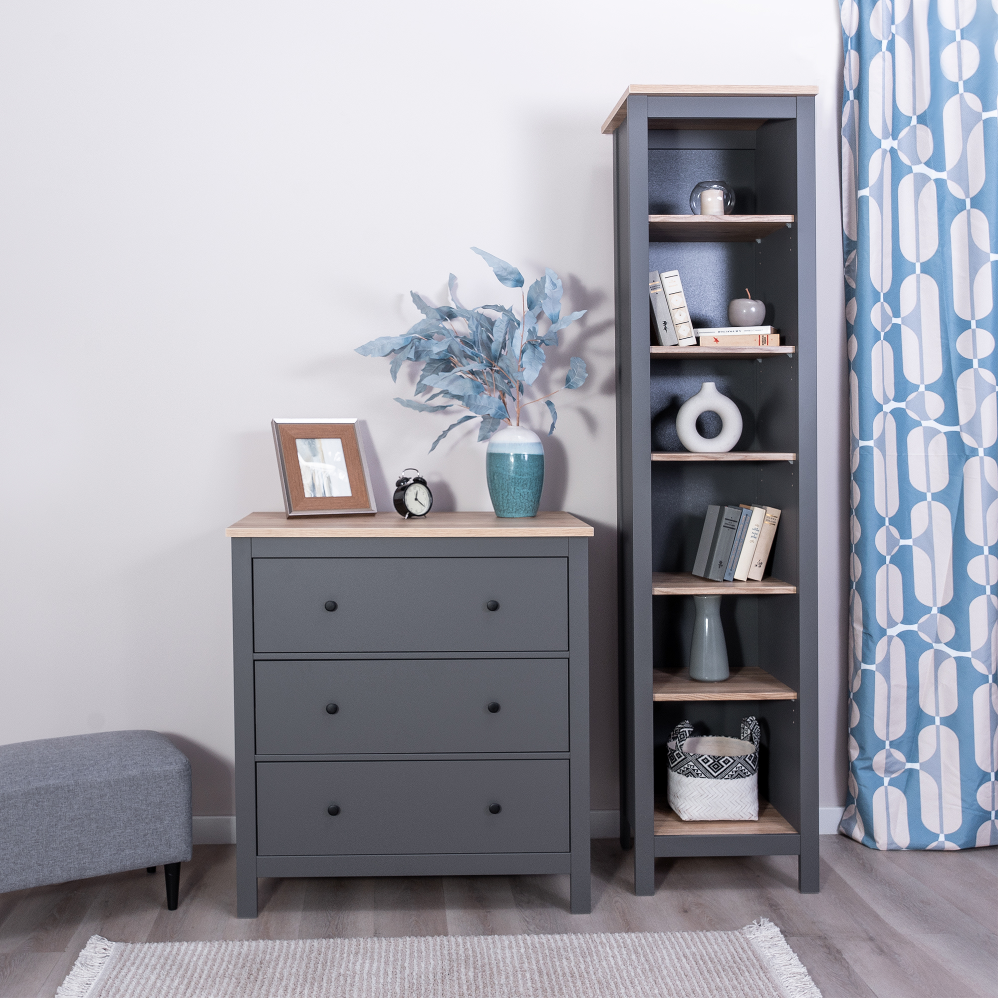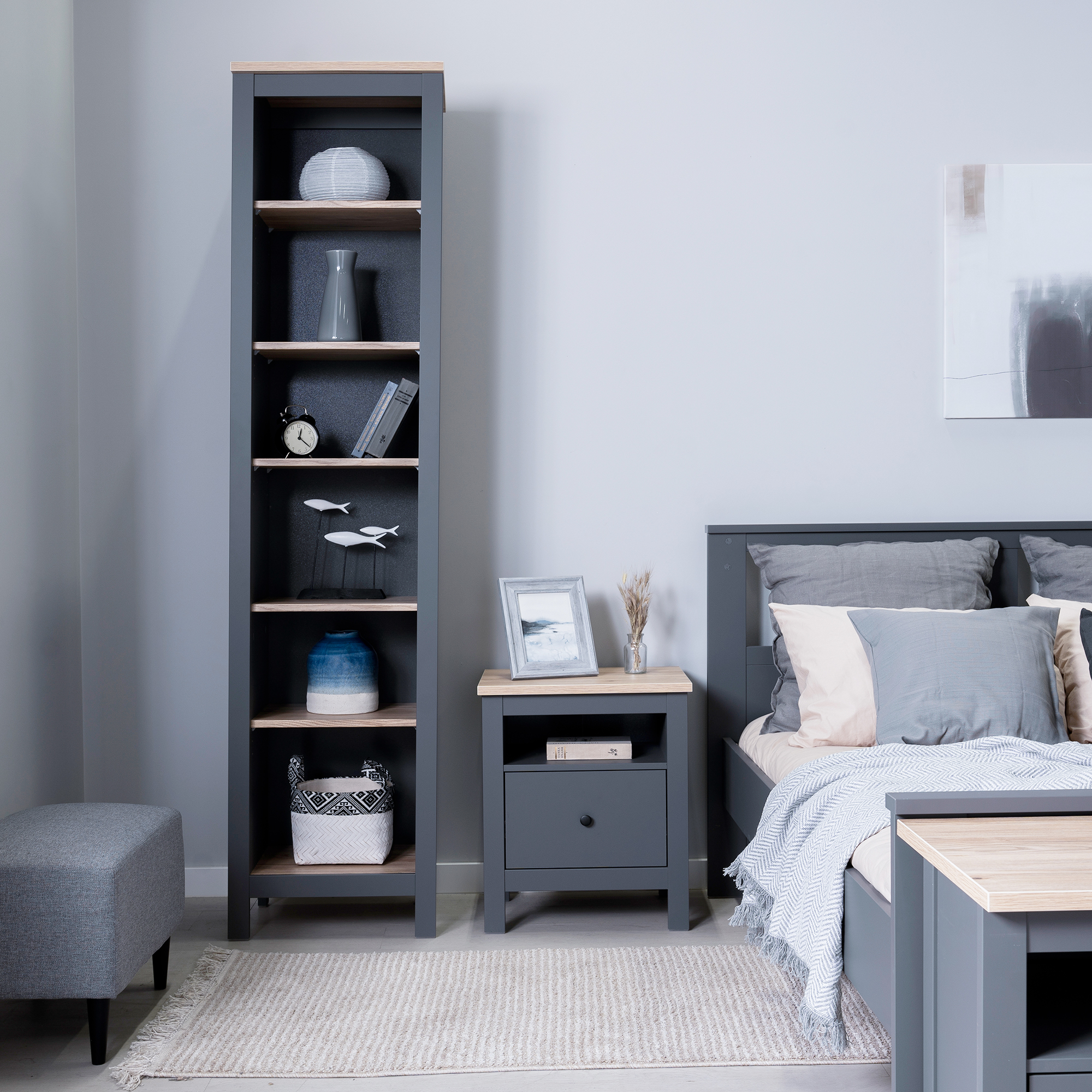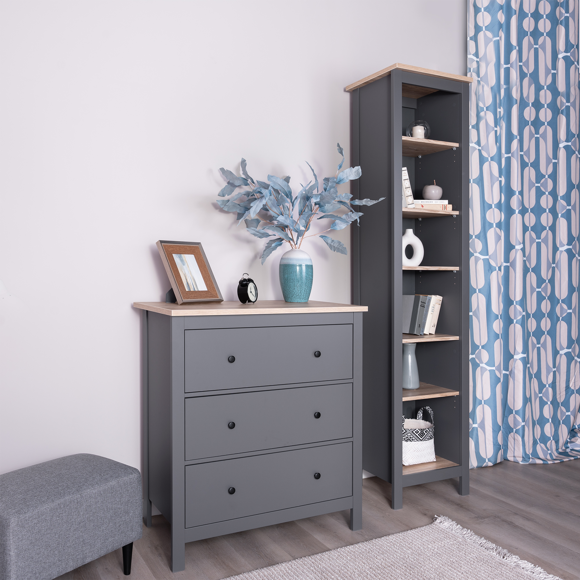 Дополнительная информация по мебели — САГА стеллаж 50 серый/ясень RU