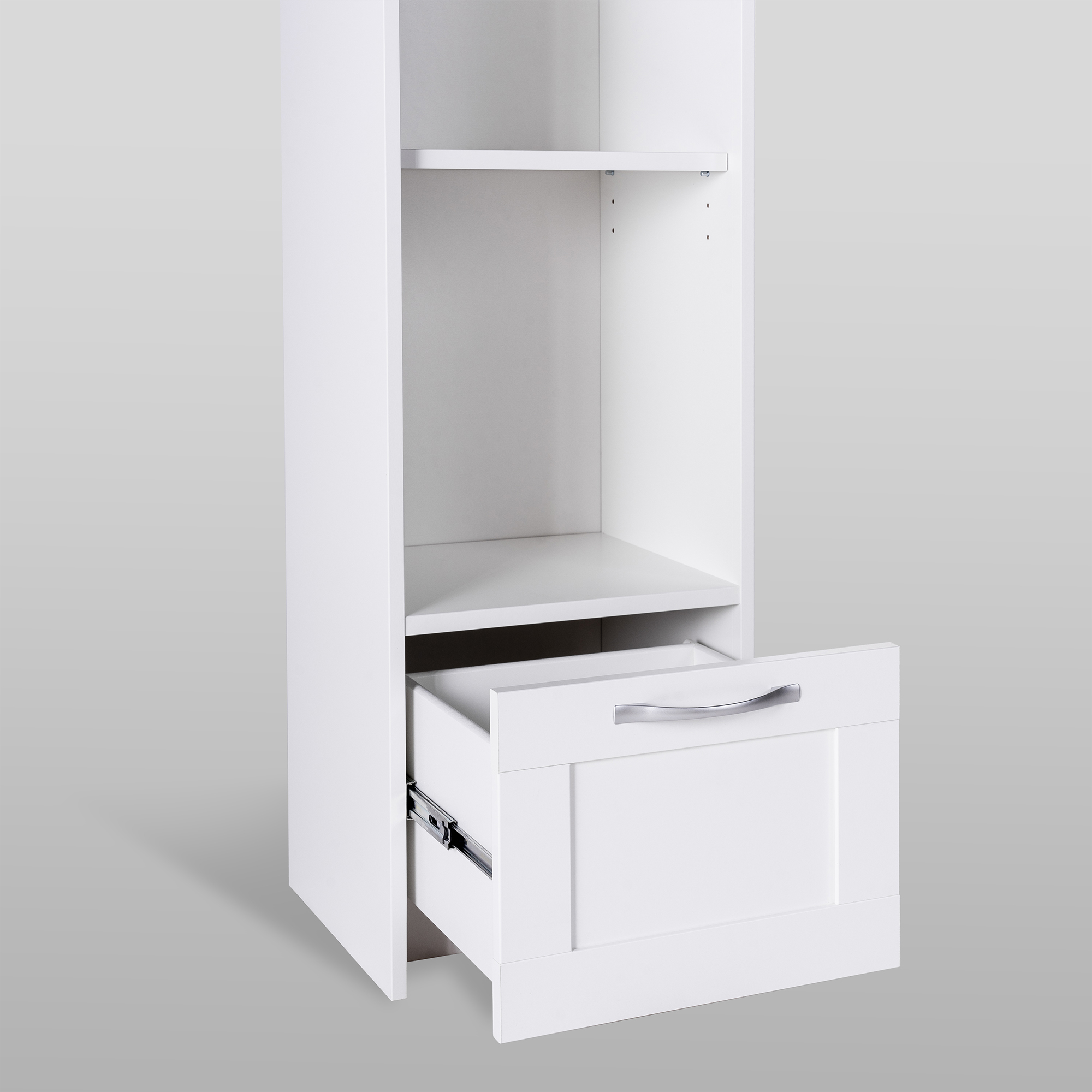Дополнительная информация по мебели — СИРИУС стеллаж 1 ящик 39х190 белый RU