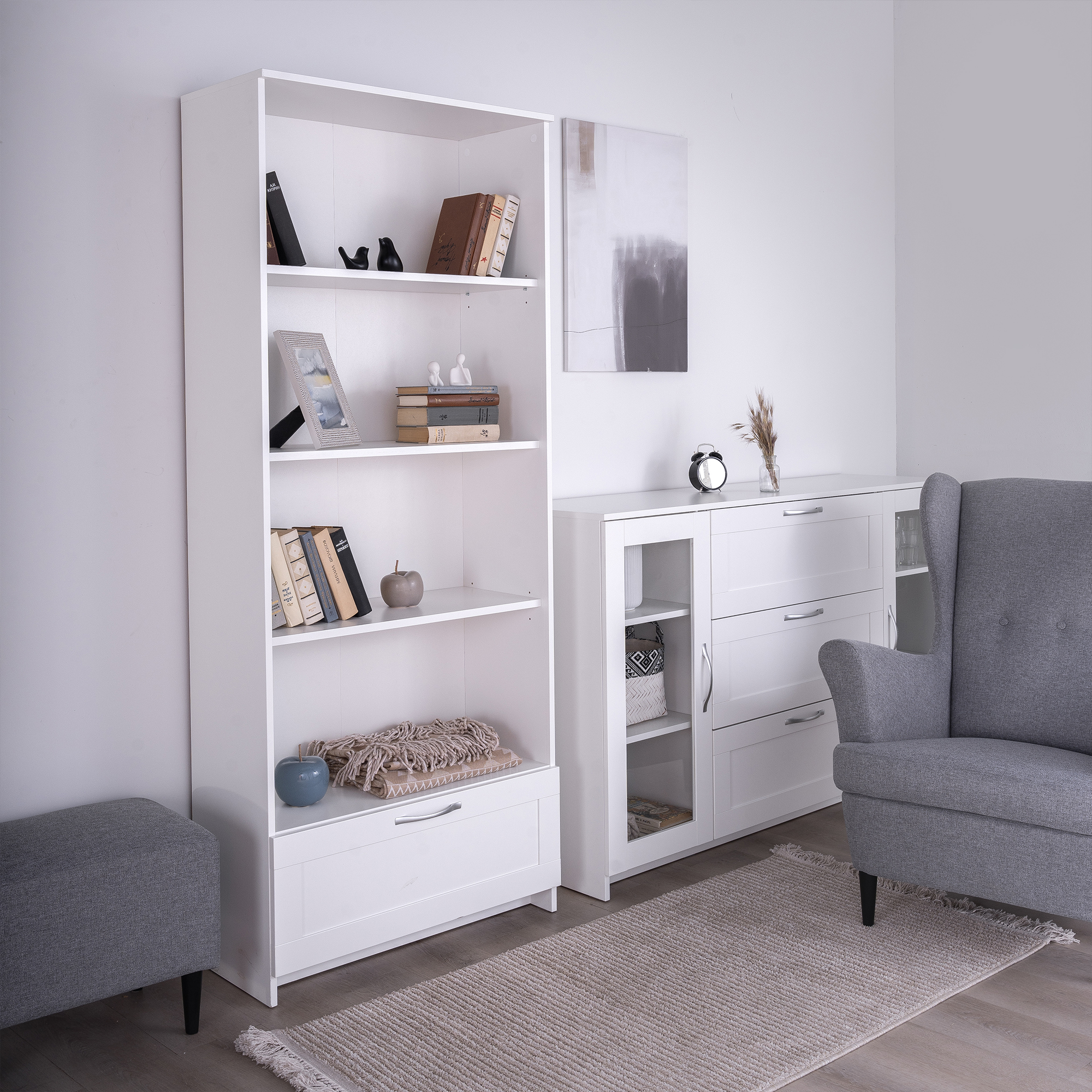 Дополнительная информация по мебели — СИРИУС стеллаж 1 ящик 78х190 белый RU