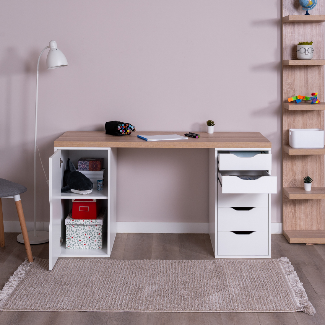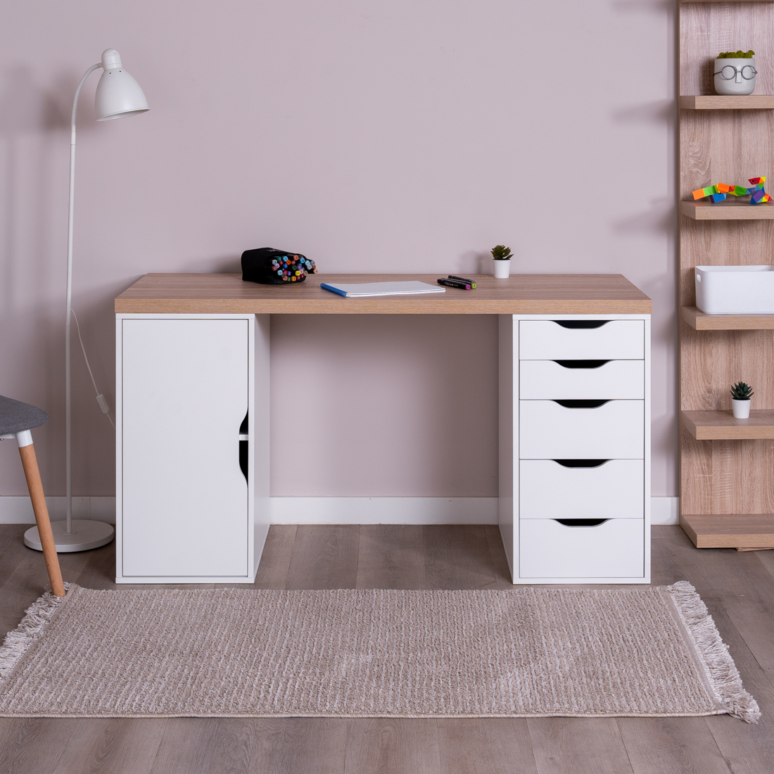 Ингар 2/5/ДВ стол письменный 140x75x55, дуб беленый/белый