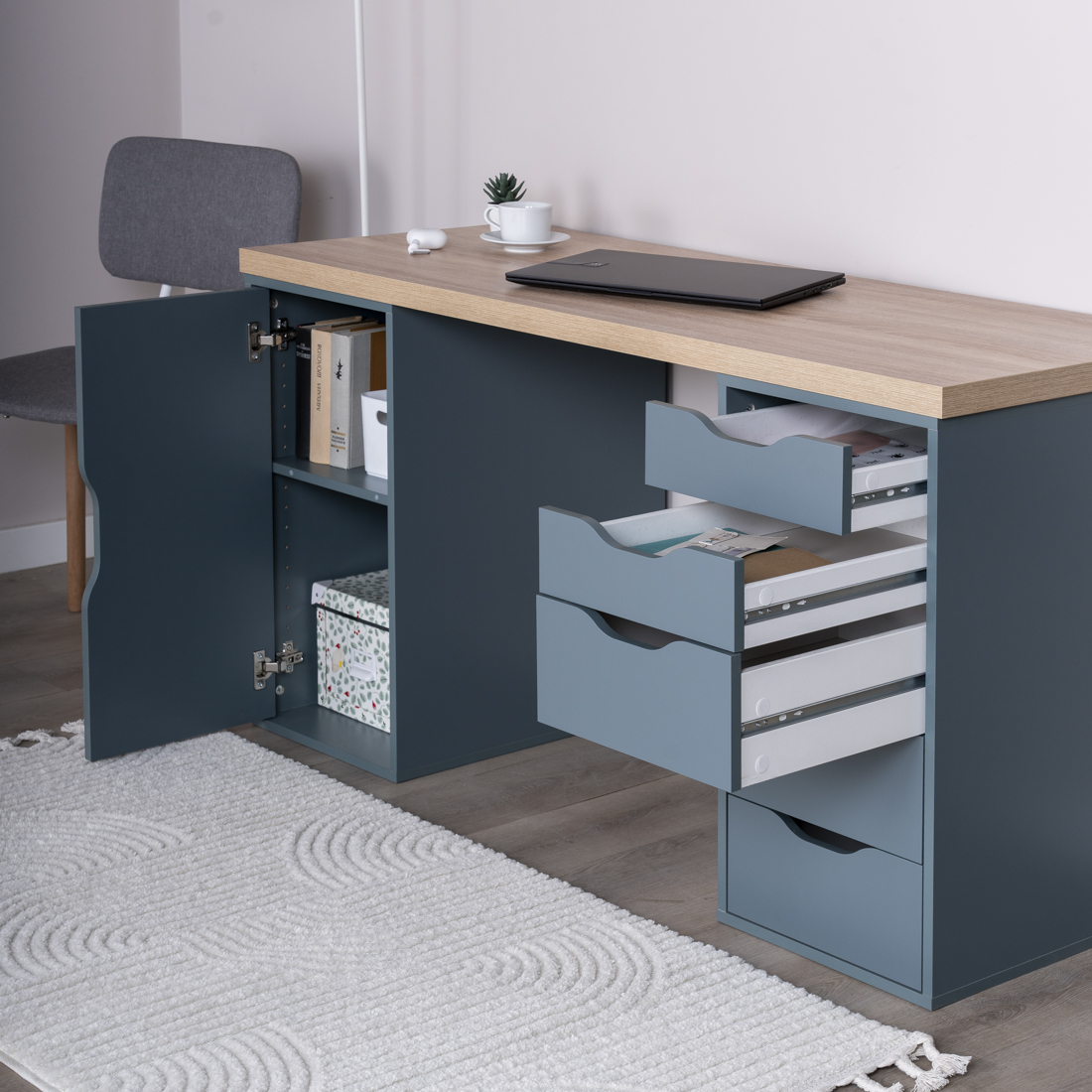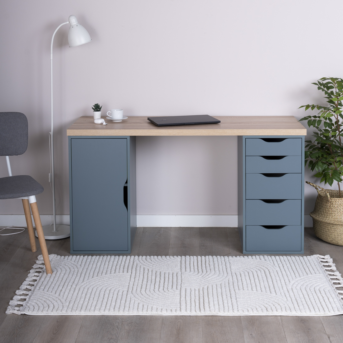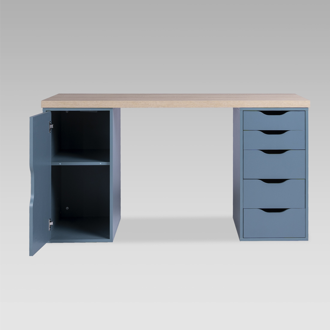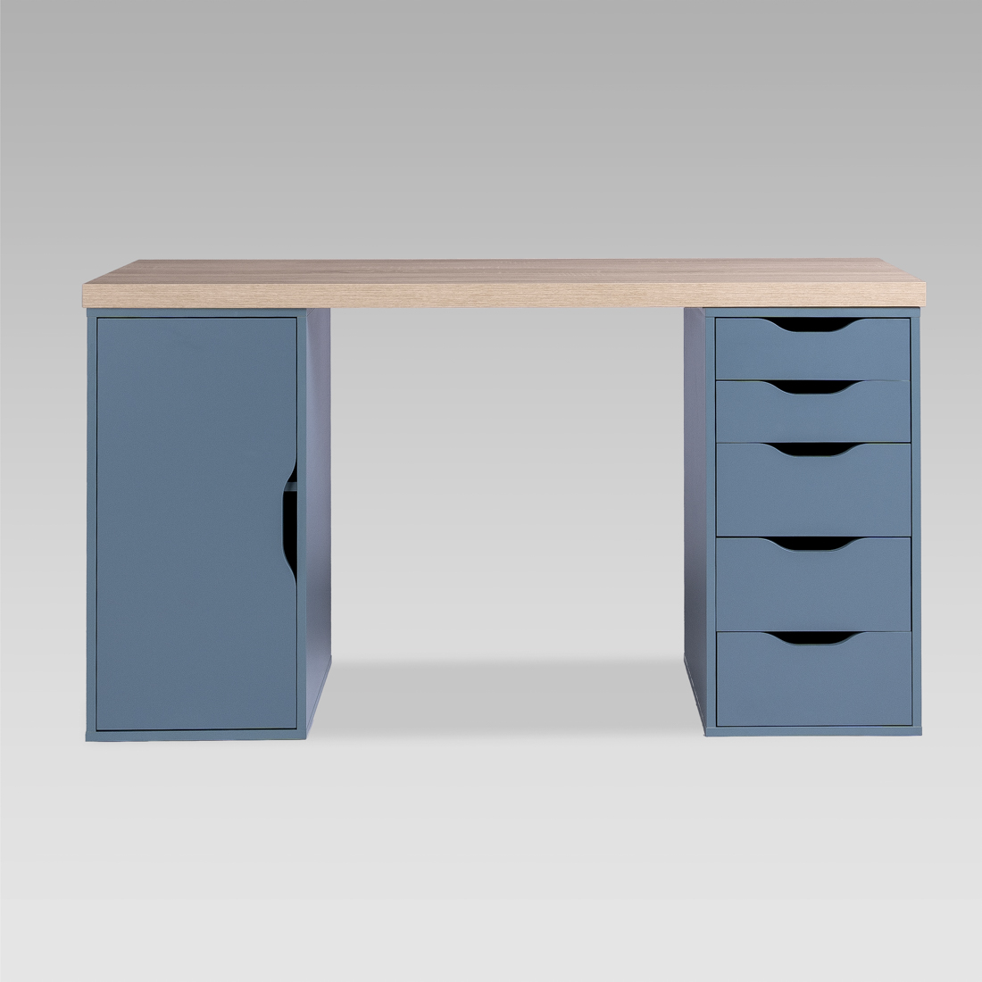 Ингар 2/5/ДВ стол письменный 140x75x55, дуб беленый/серо-бирюзовый
