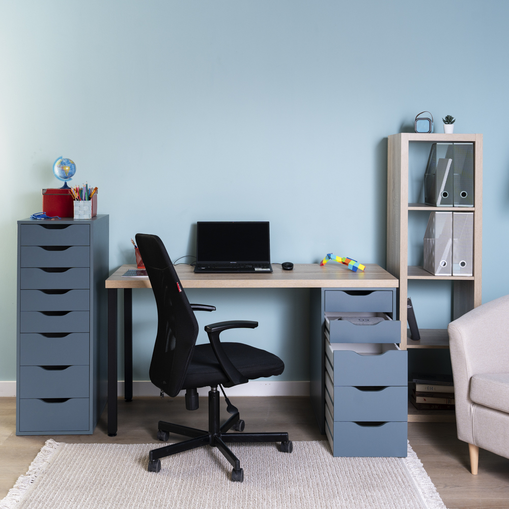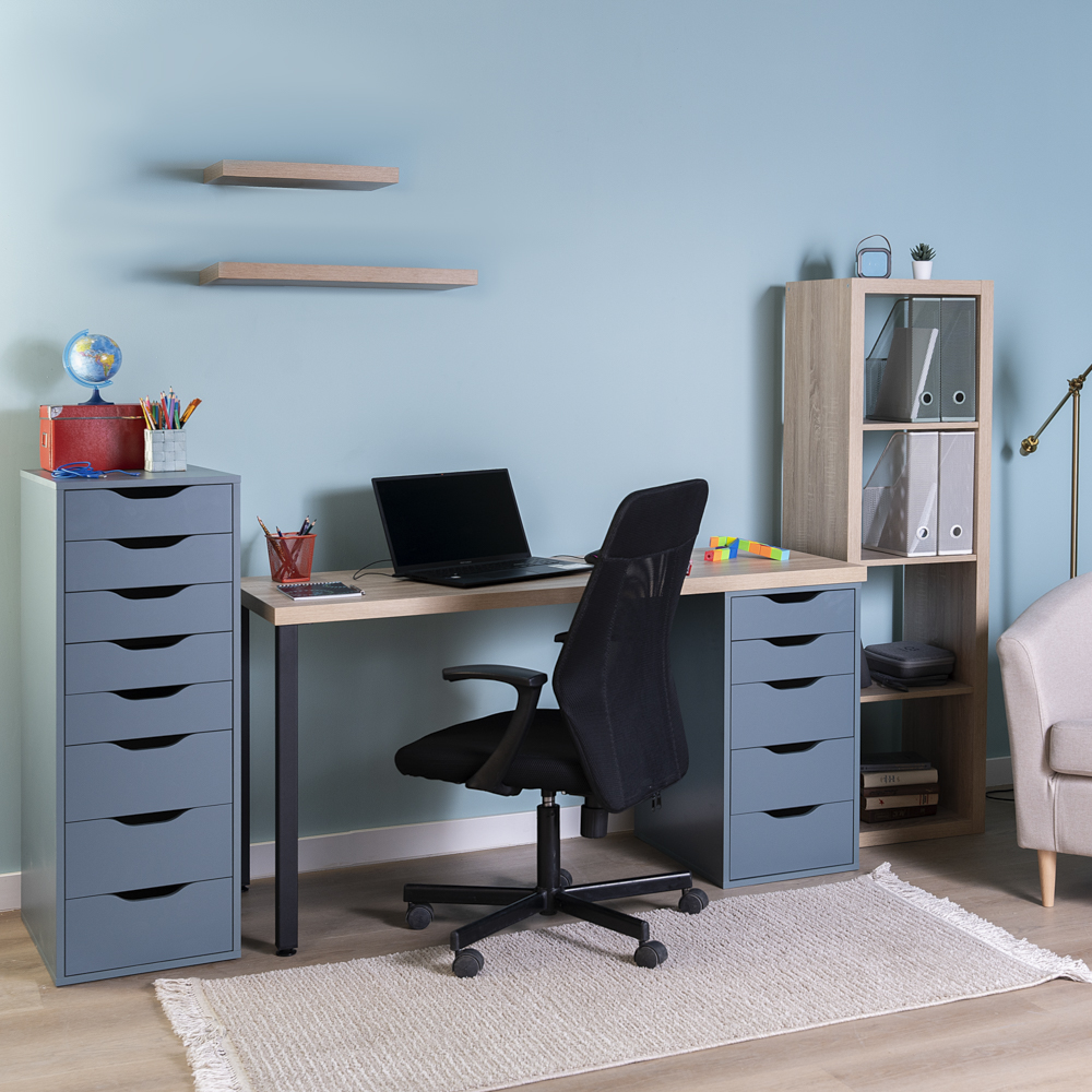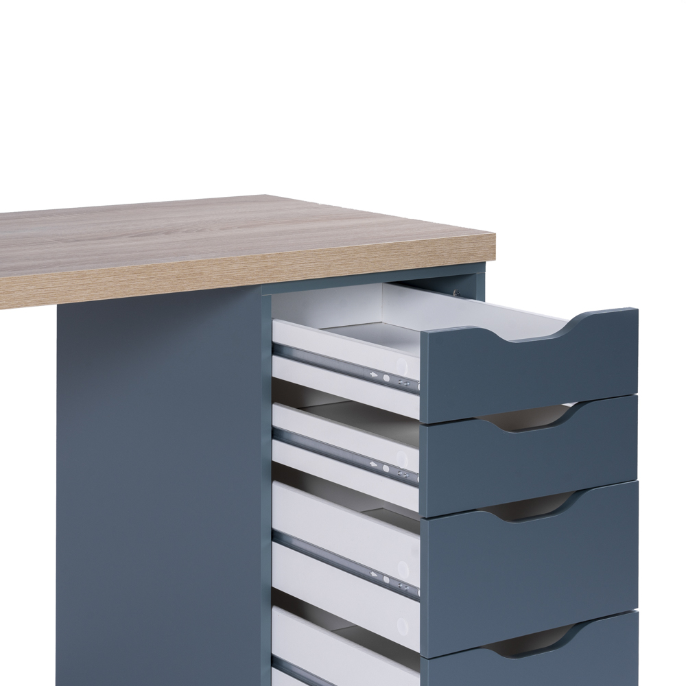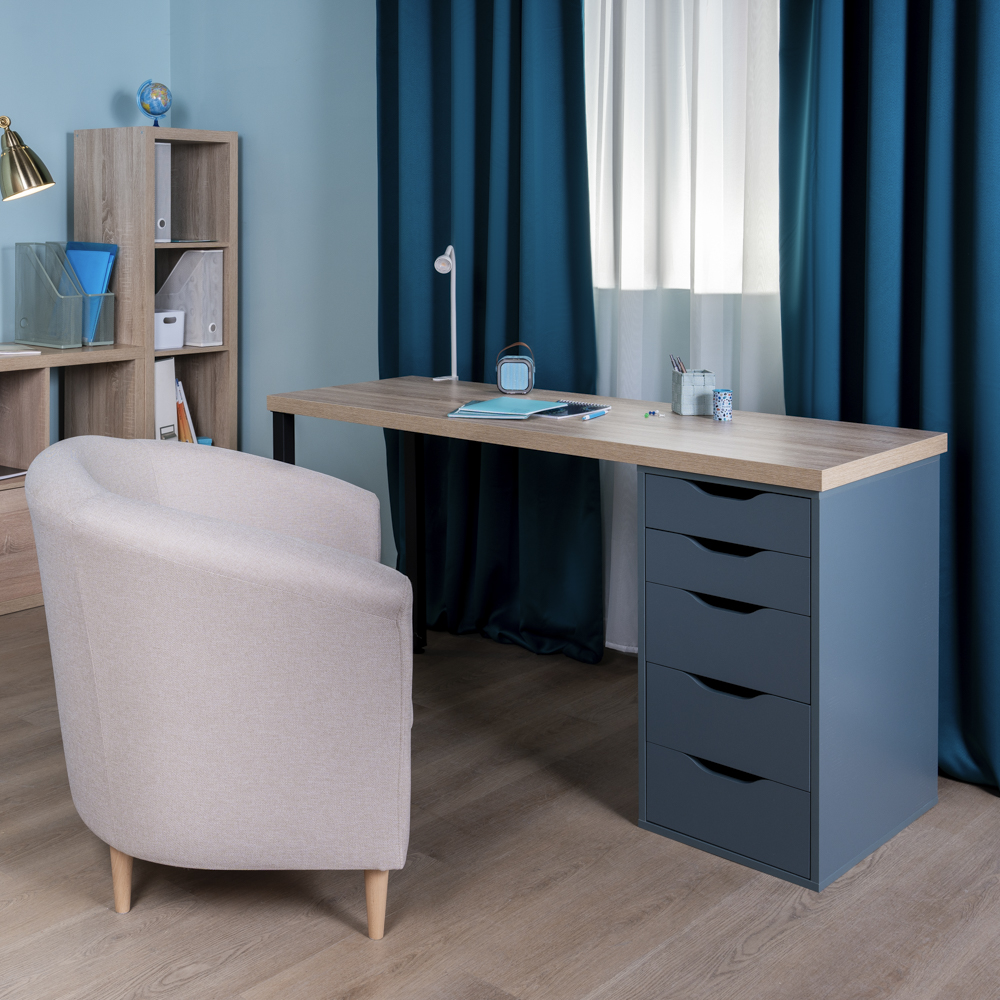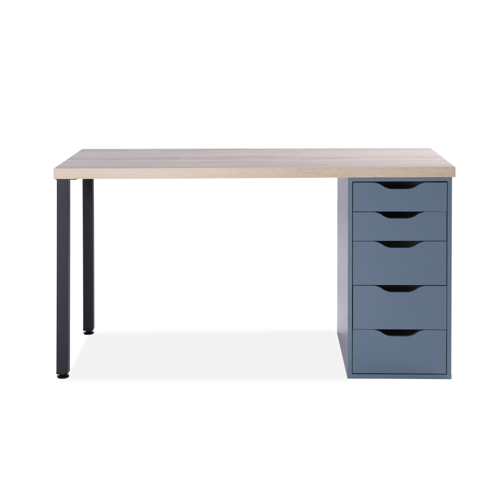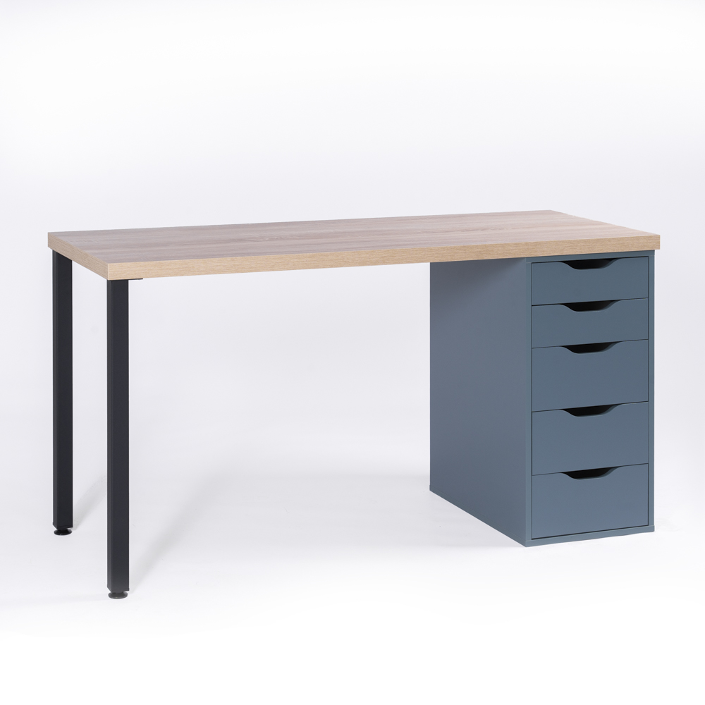 Ингар 2/5Т стол письменный 140x75x55, дуб беленый/серо-бирюзовый/черный