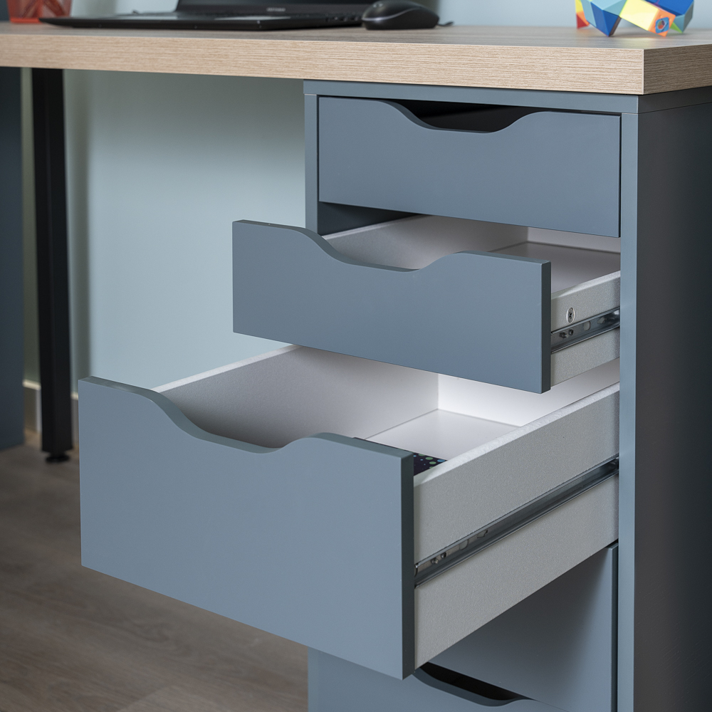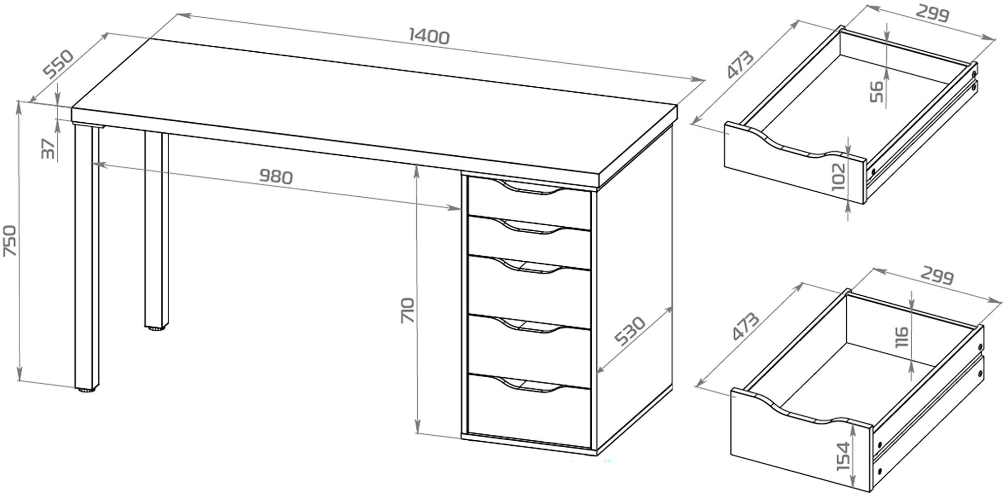 Дополнительная информация по мебели — Ингар 2/5Т стол письменный 140x75x55, дуб беленый/серо-бирюзовый/черный