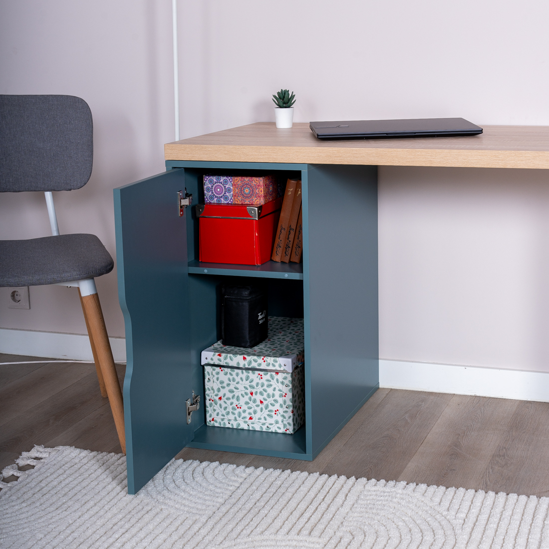 Дополнительная информация по мебели — Ингар 2/ДВ/T стол письменный 140x75x55, дуб беленый/серо-бирюзовый/черный