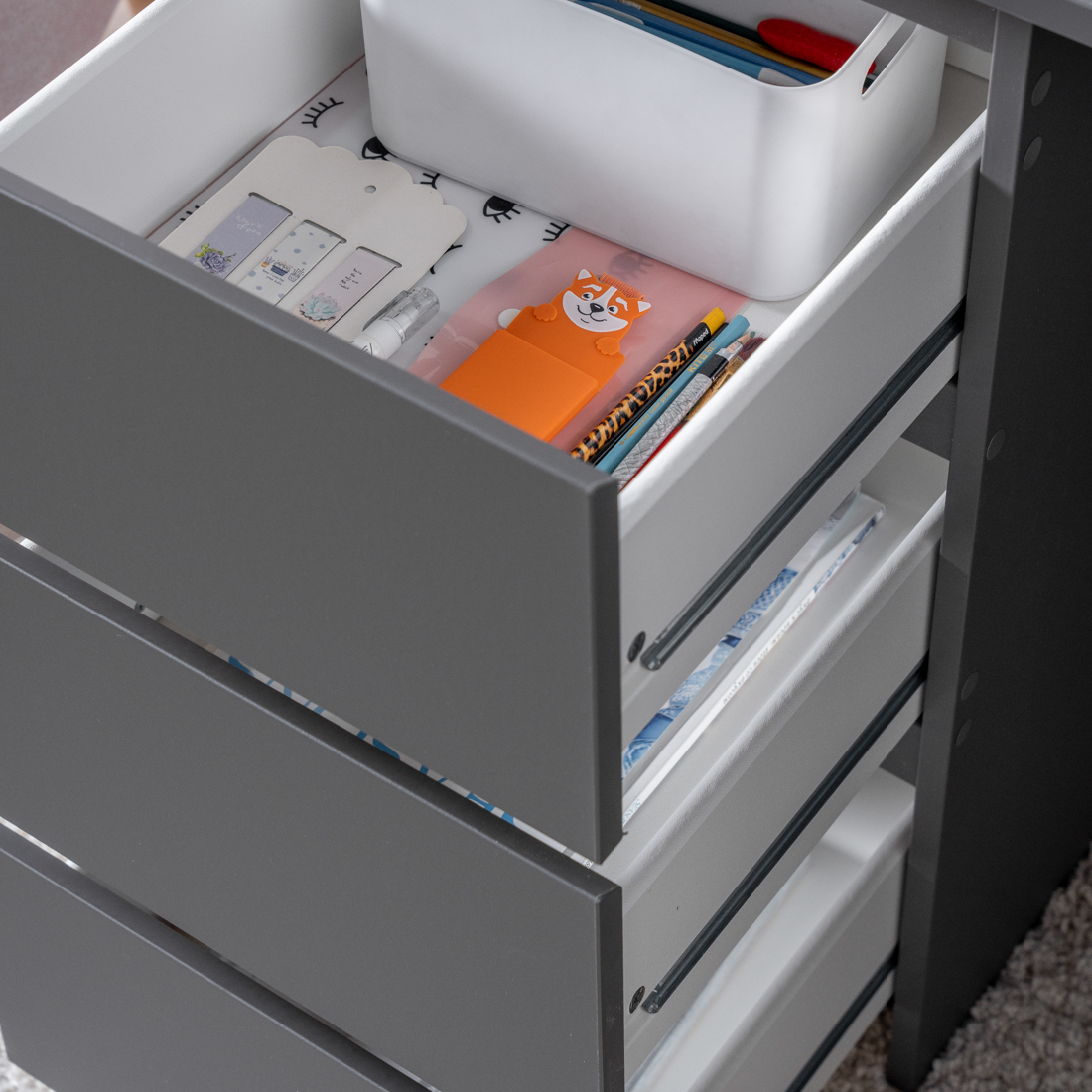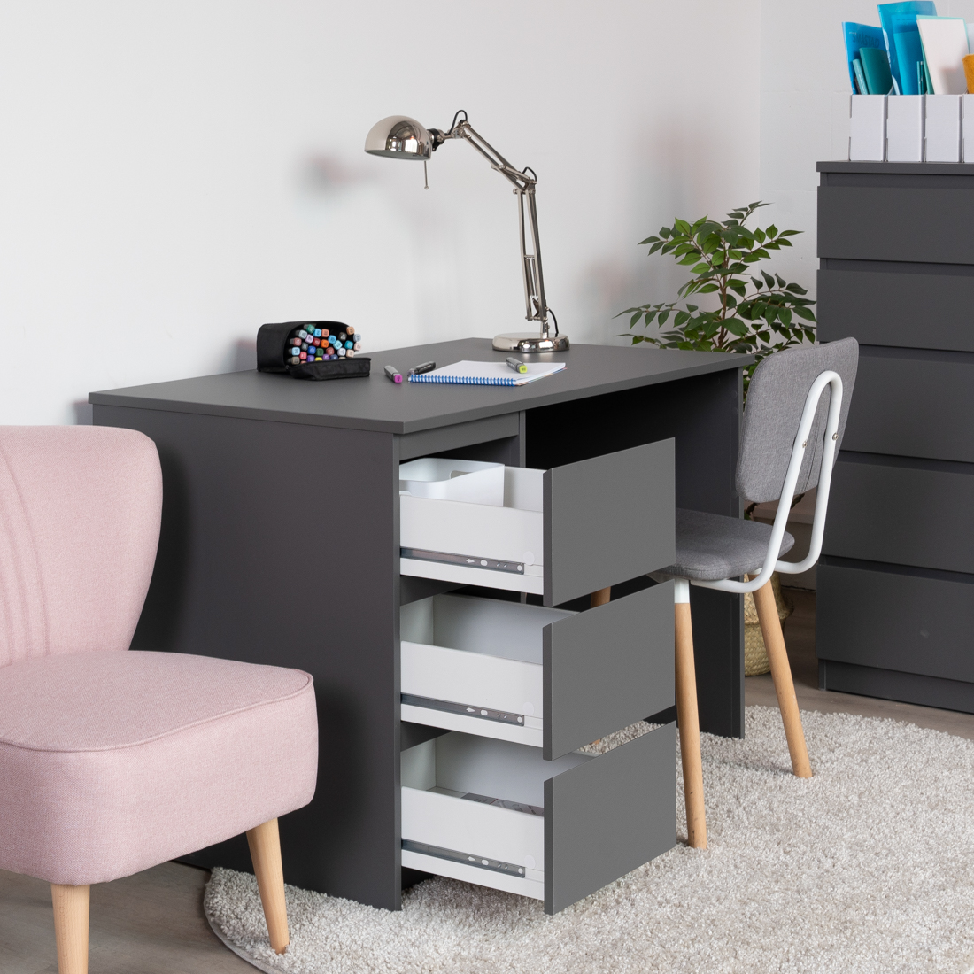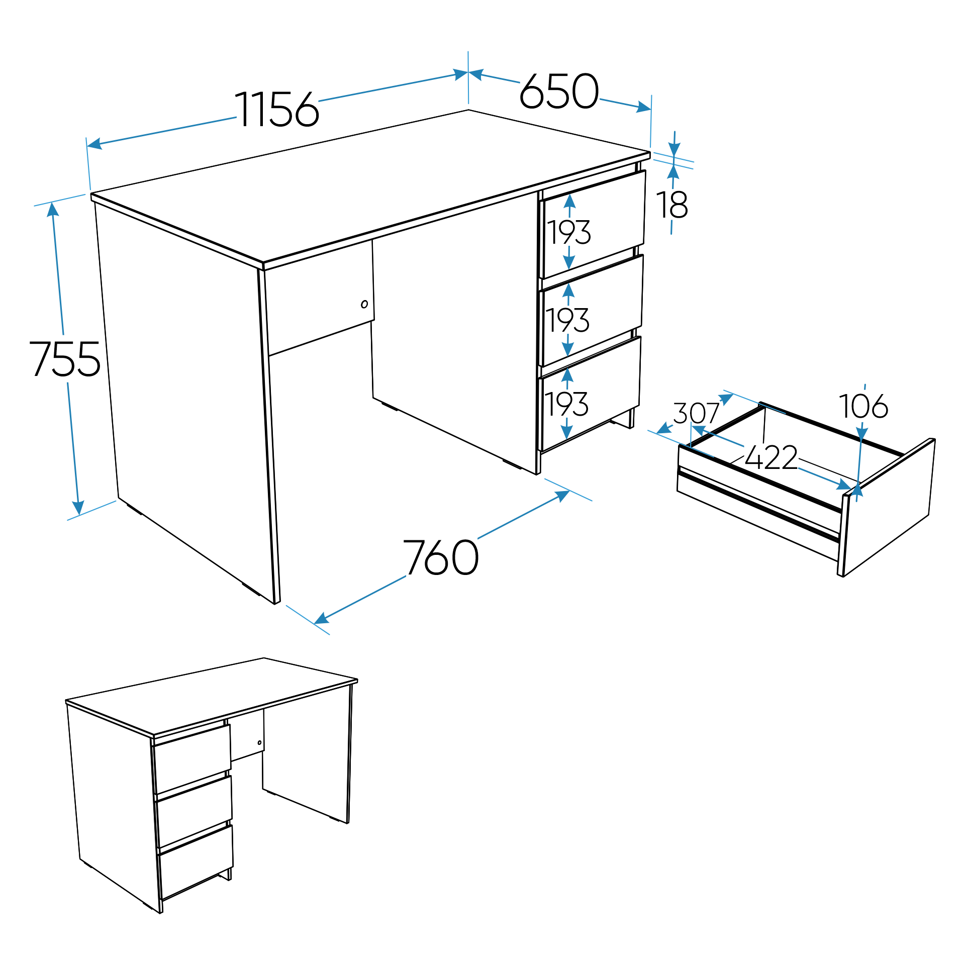 Дополнительная информация по мебели — КАСТОР стол письменный 3 ящика 116х65 RU серый
