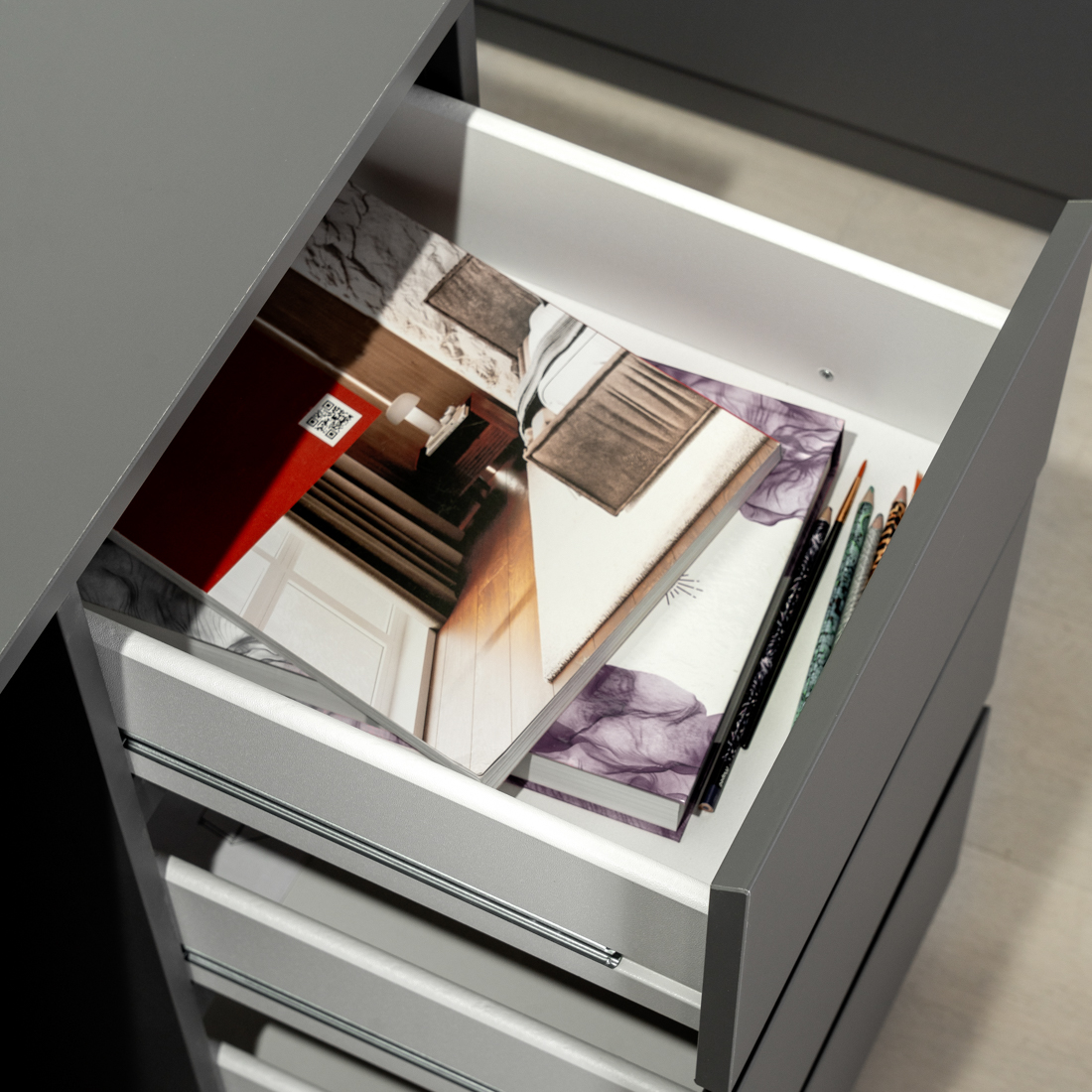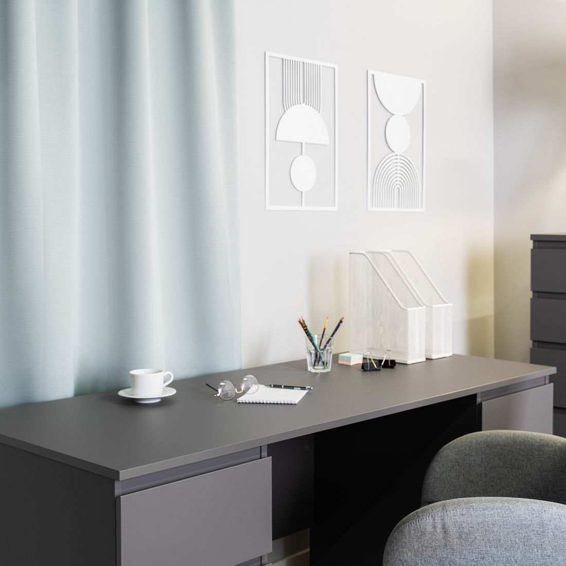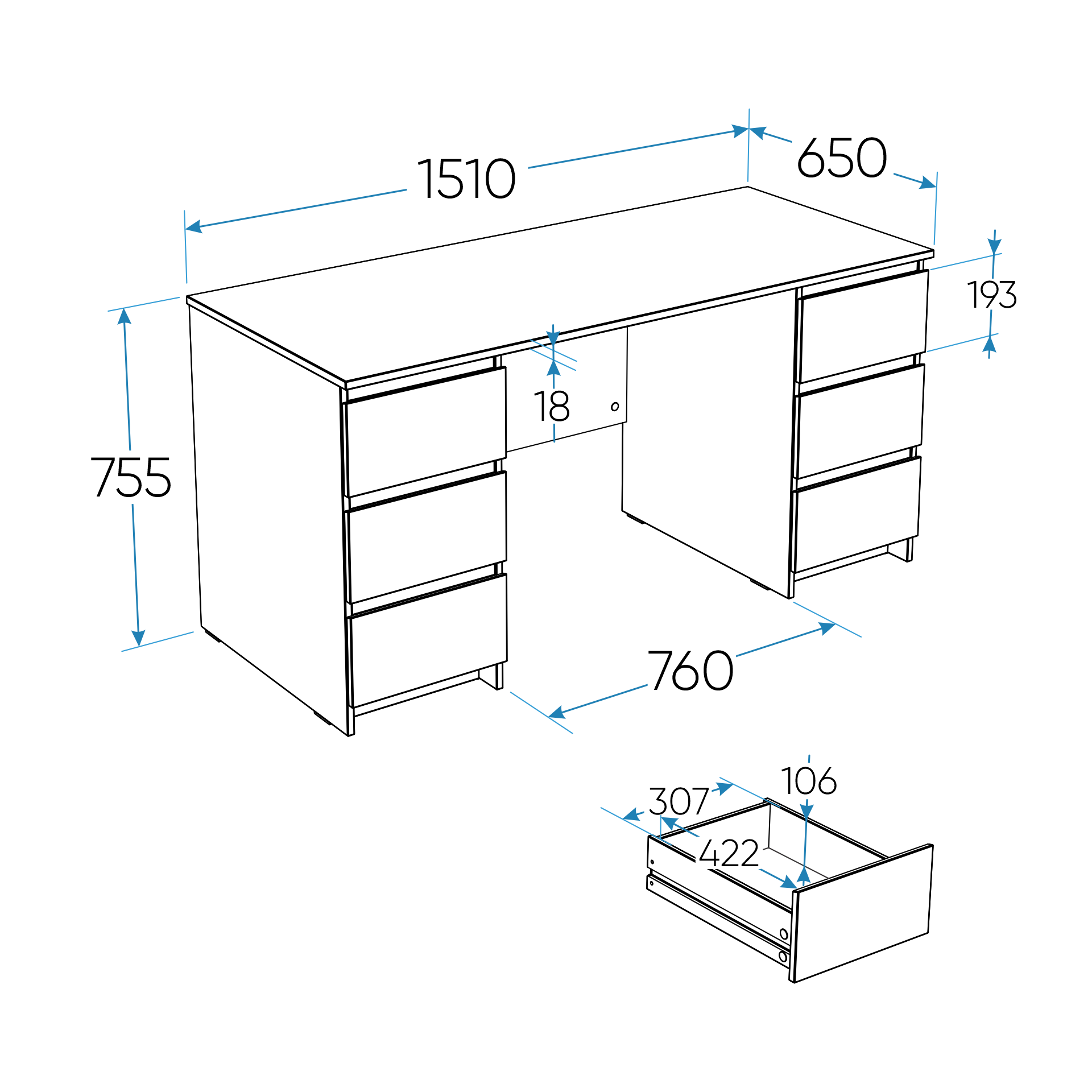 Дополнительная информация по мебели — КАСТОР стол письменный 6 ящиков 151х65 RU серый