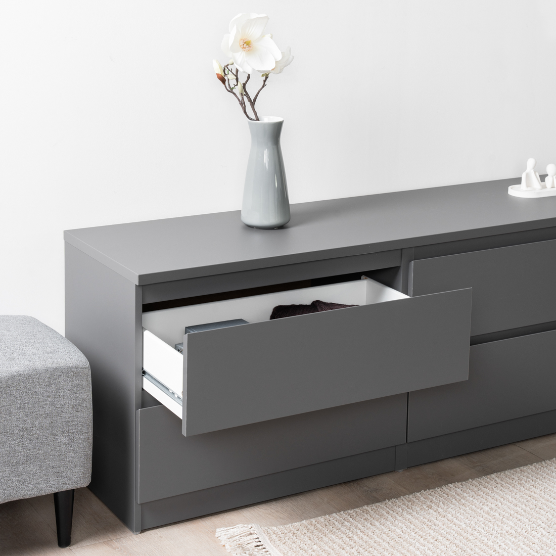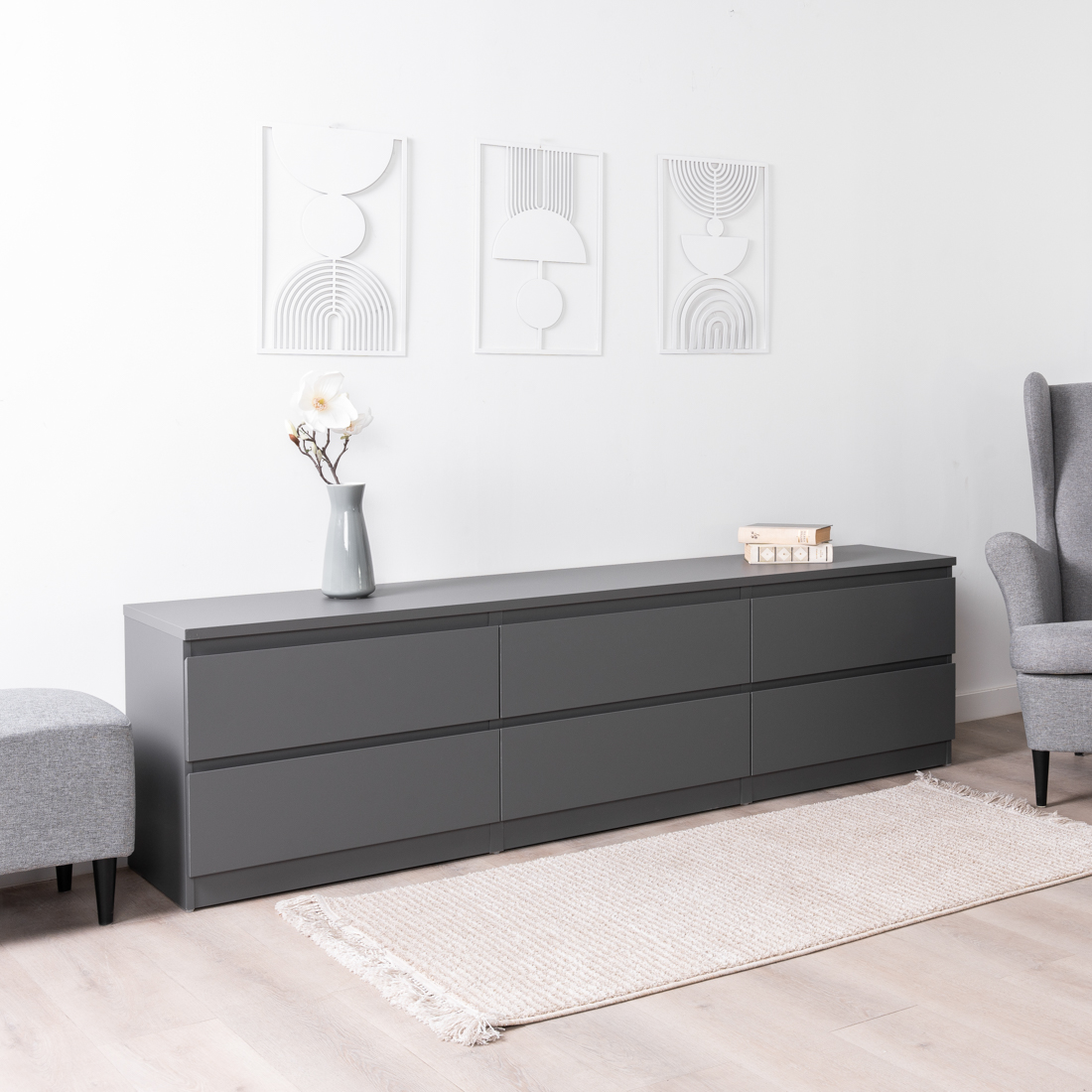 Дополнительная информация по мебели — КАСТОР тумба 6 ящиков RU серый