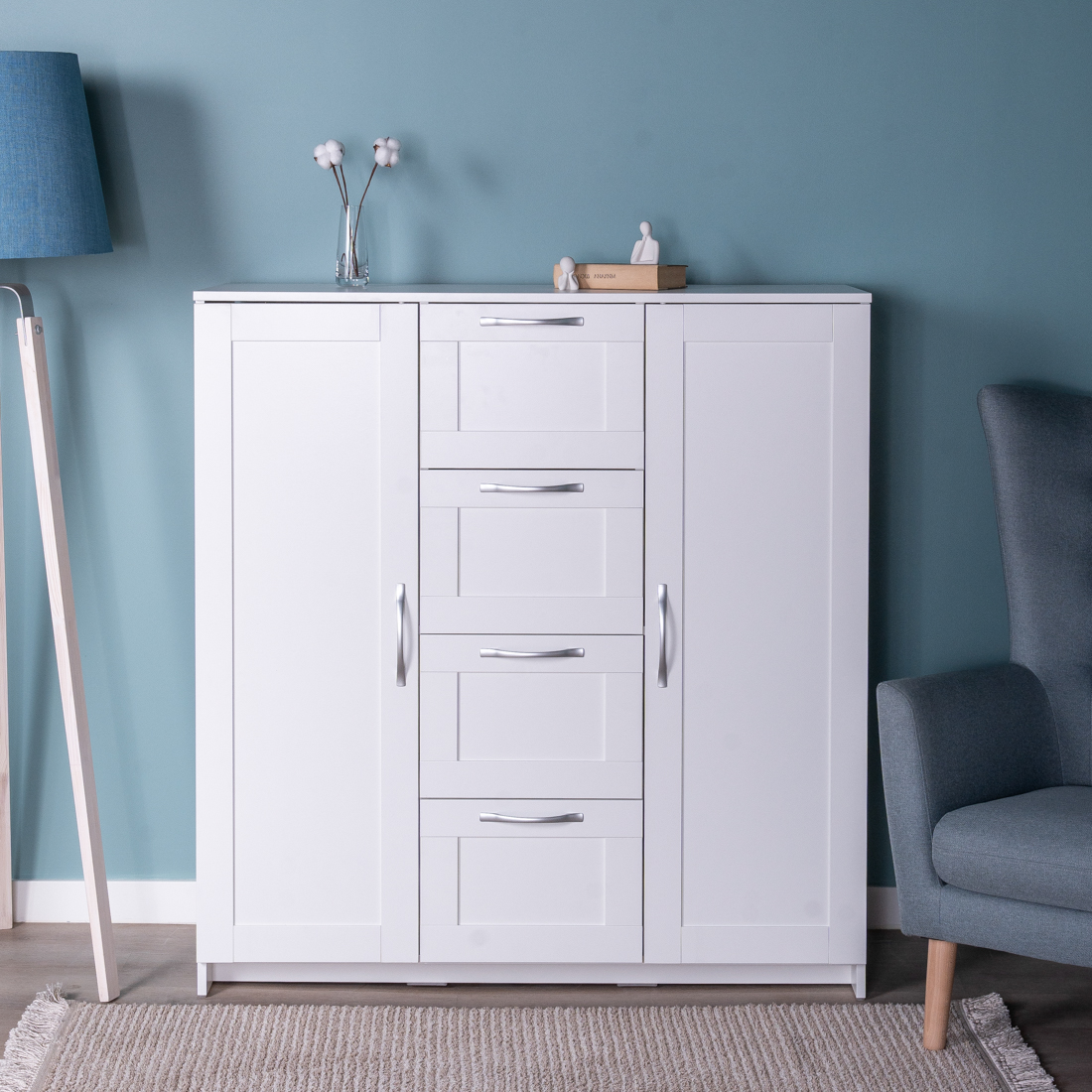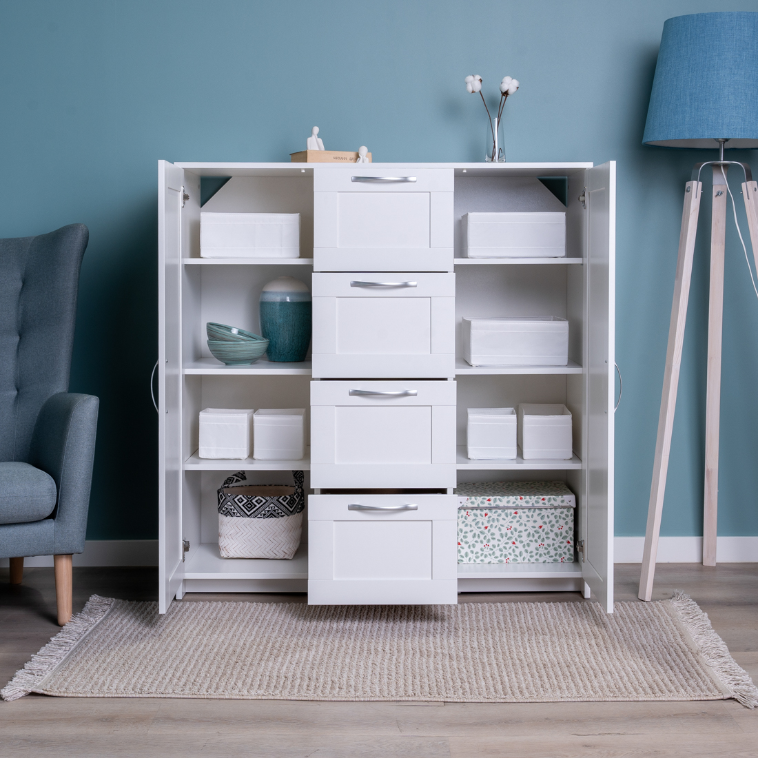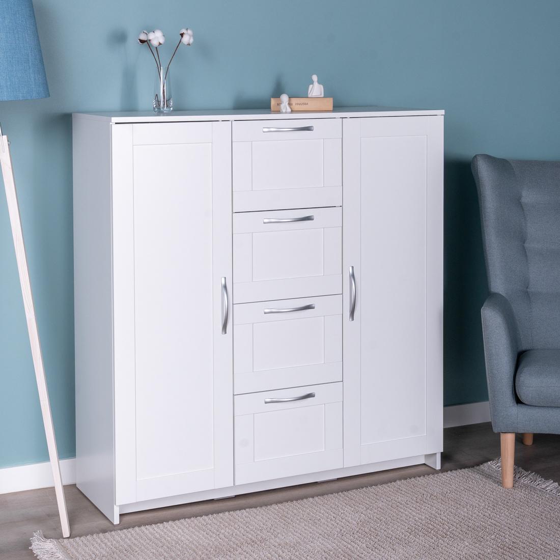СИРИУС тумба 2 двери и 4 ящика 117х123 белая RU