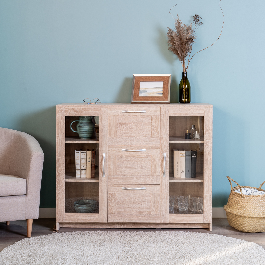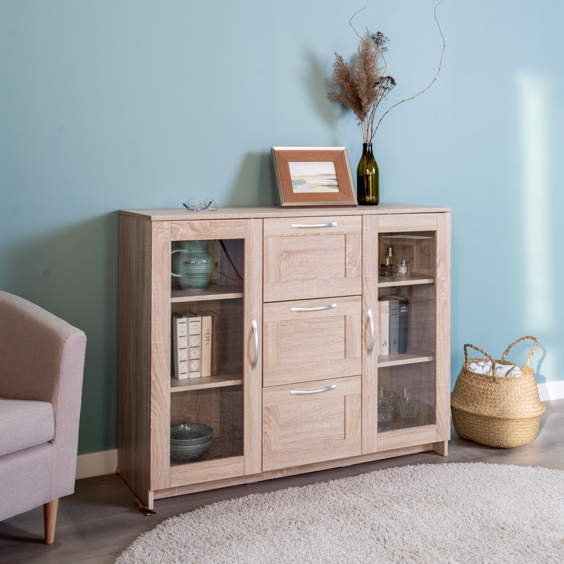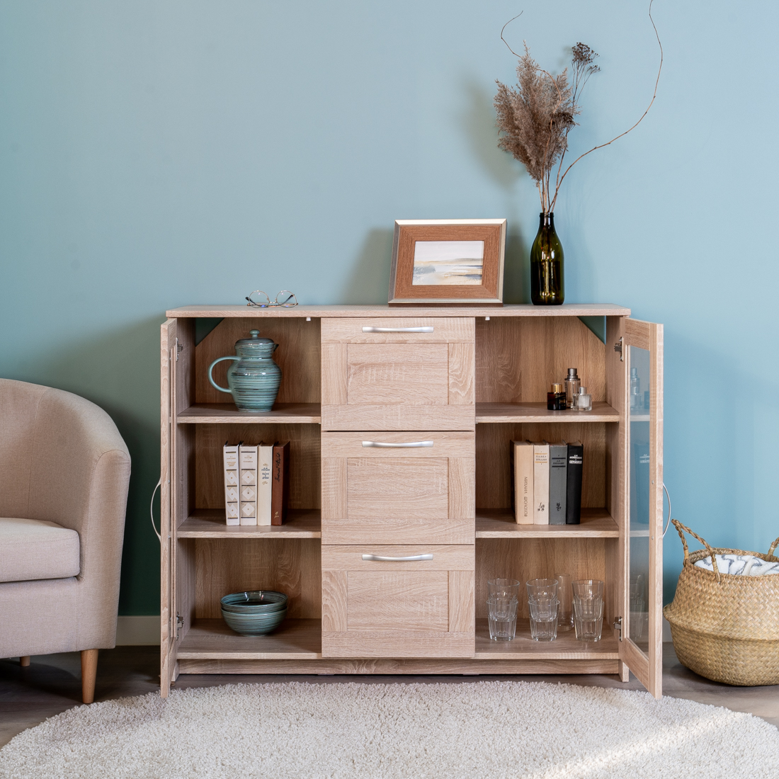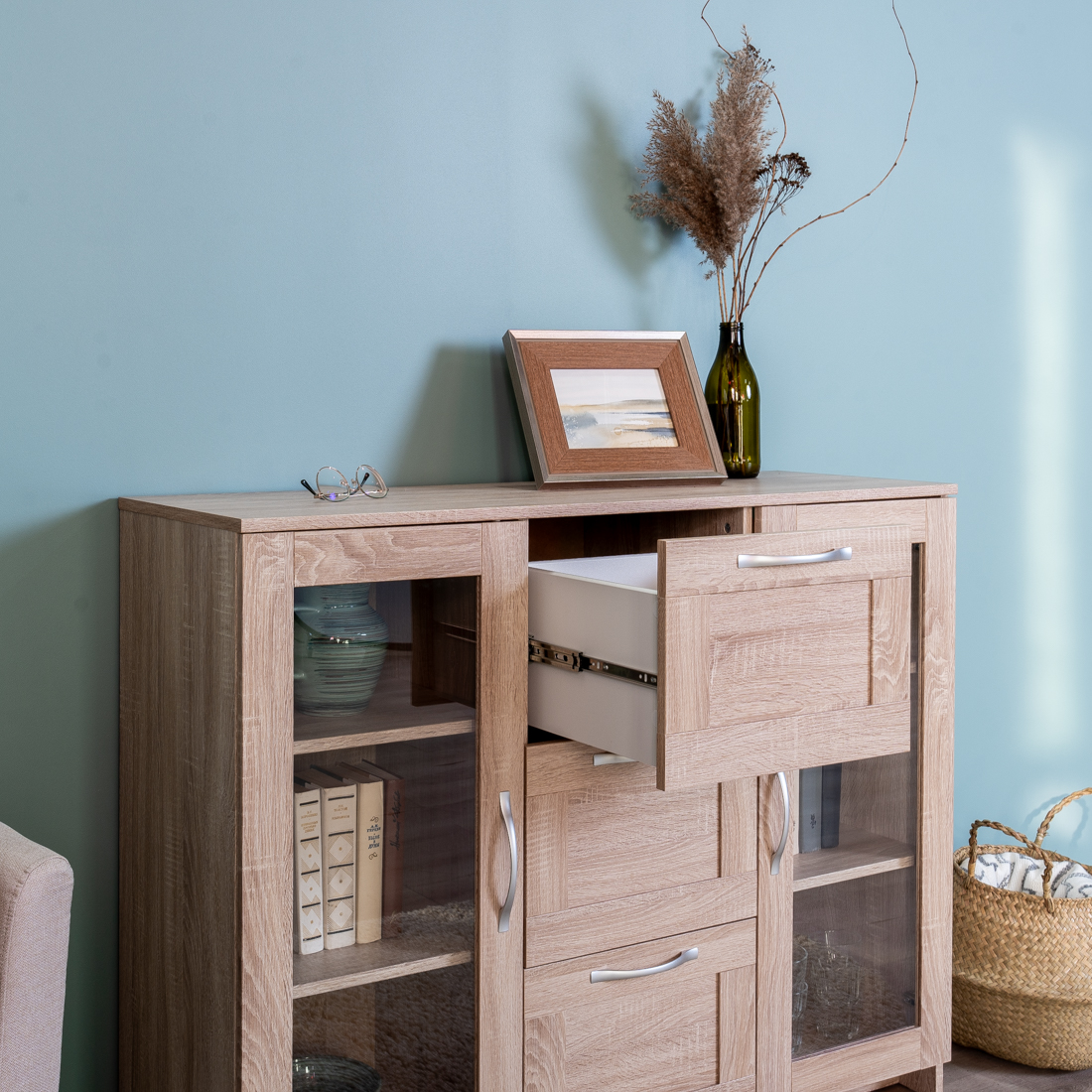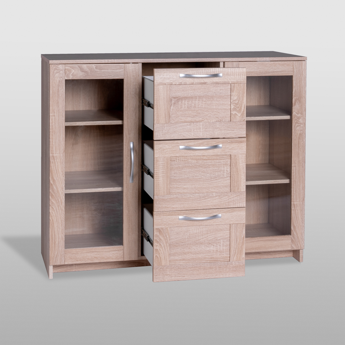 СИРИУС тумба 2 двери со стеклом и 3 ящика 117х95 сонома RU