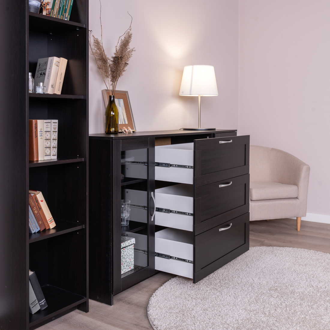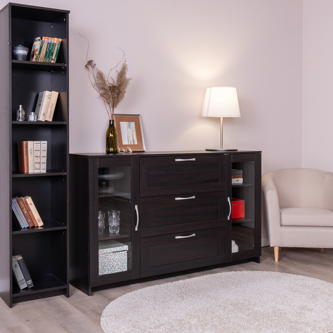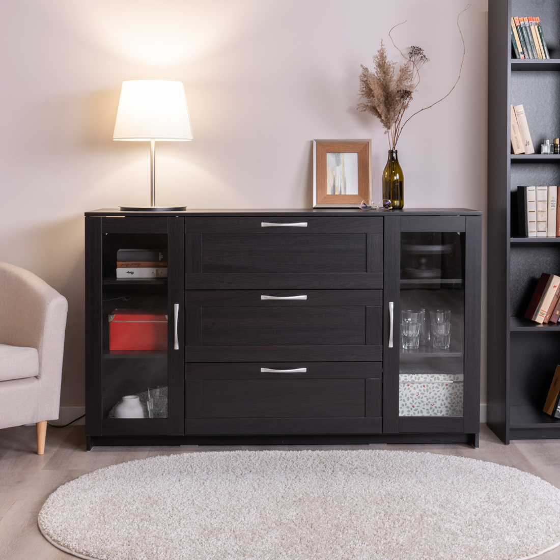 СИРИУС тумба 2 двери со стеклом и 3 ящика 156х95 Дуб Венге RU