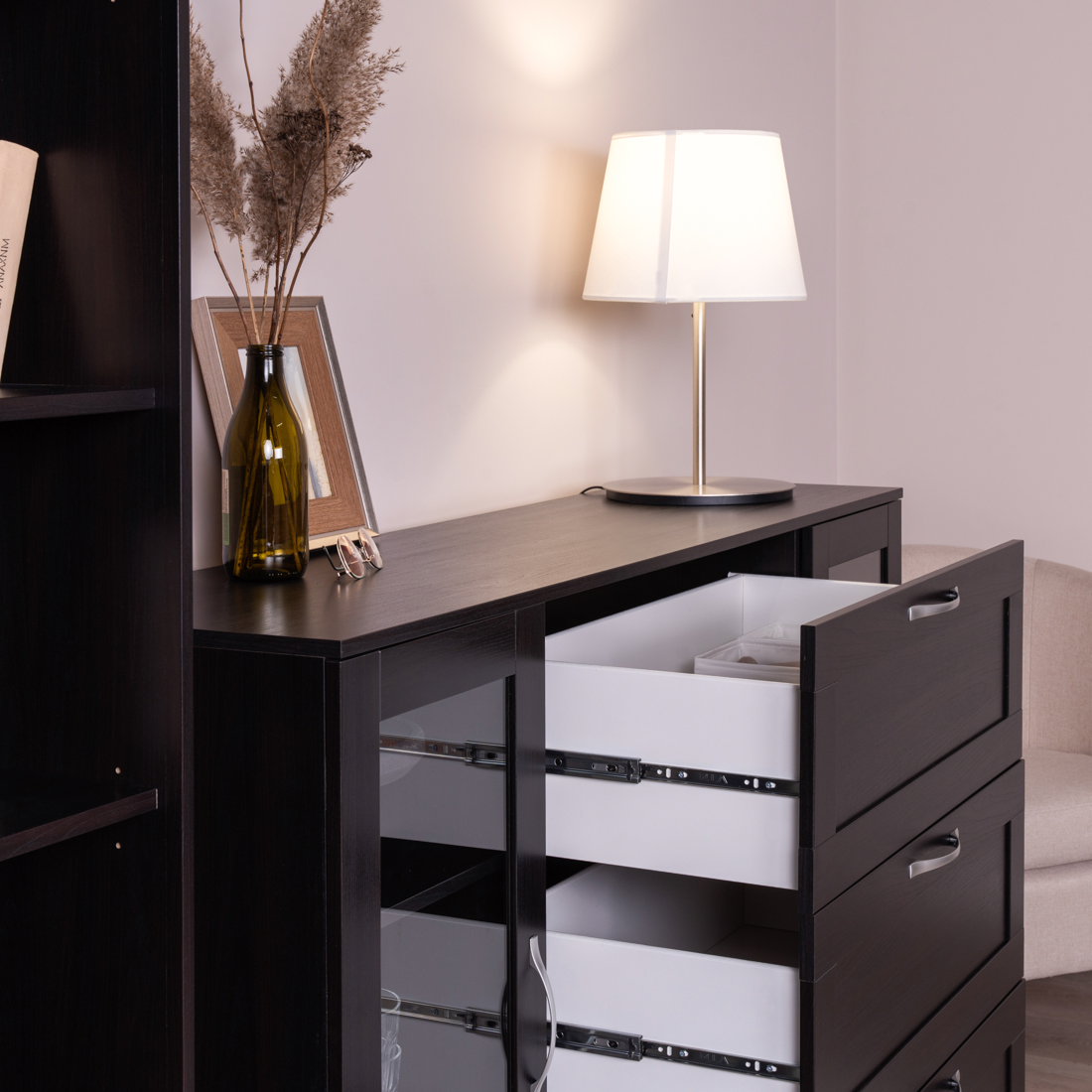 Дополнительная информация по мебели — СИРИУС тумба 2 двери со стеклом и 3 ящика 156х95 Дуб Венге RU