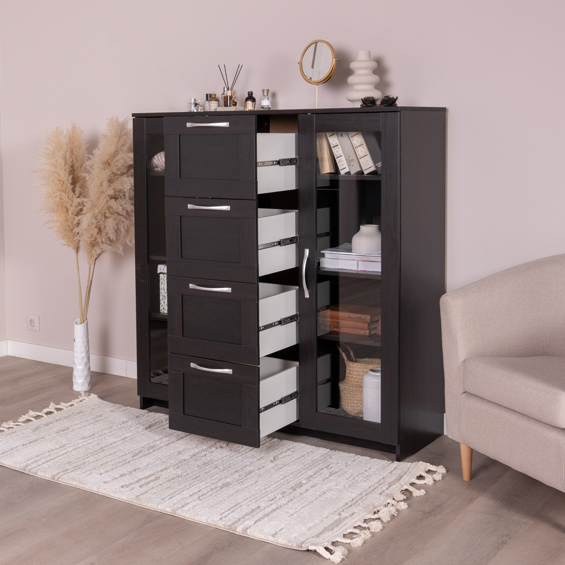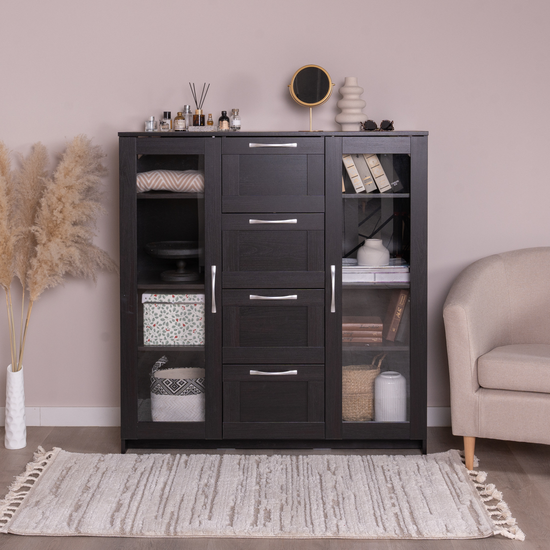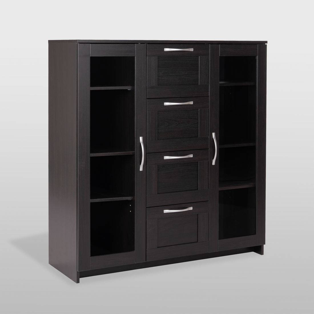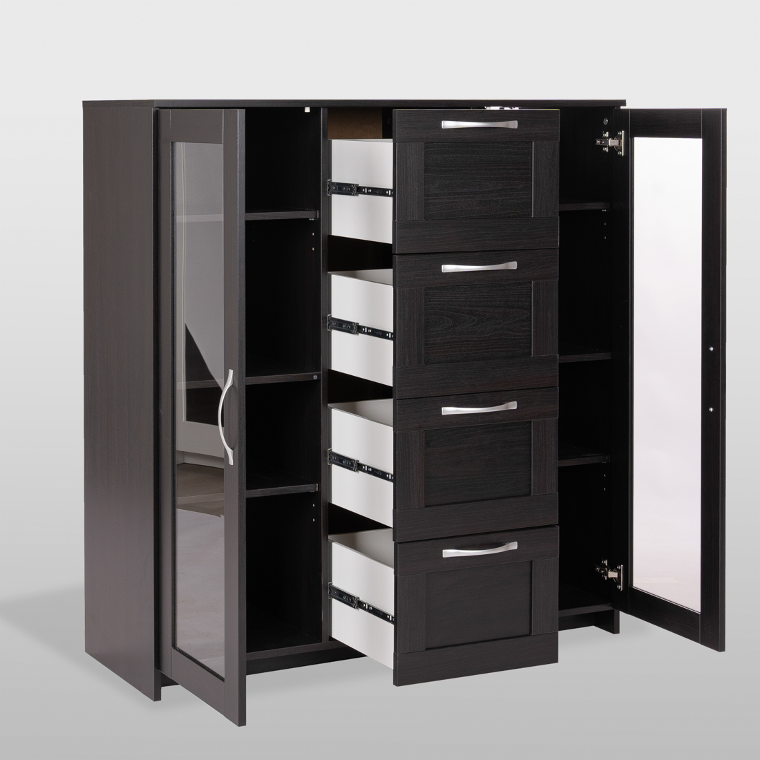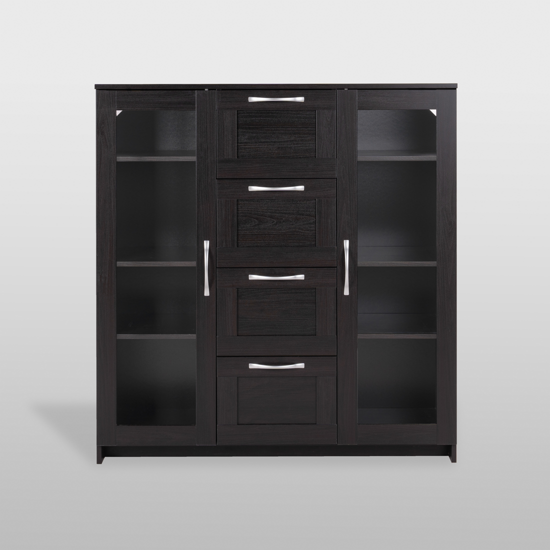 СИРИУС тумба 2 двери со стеклом и 4 ящика 117х123 Дуб Венге RU