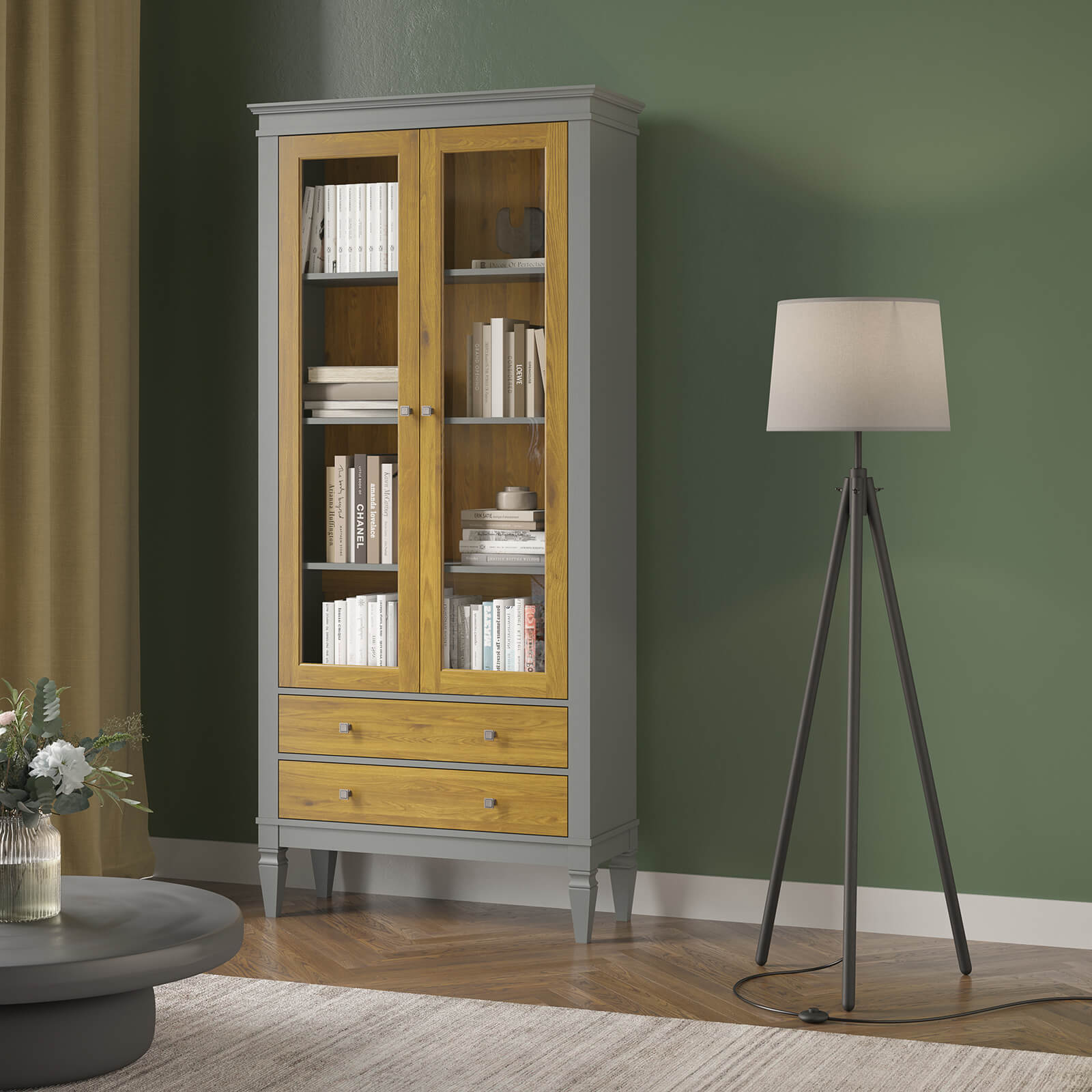 Шкаф для посуды Ольса-С 202 серый №7042 + антик №24 для гостиной.