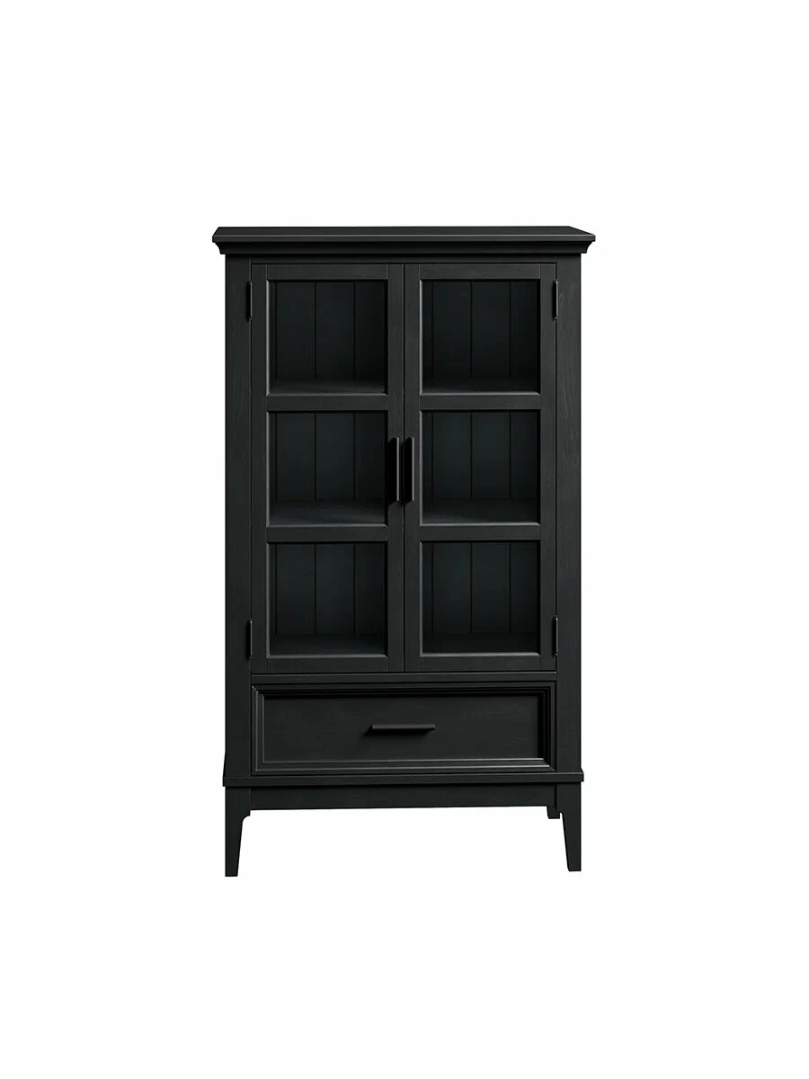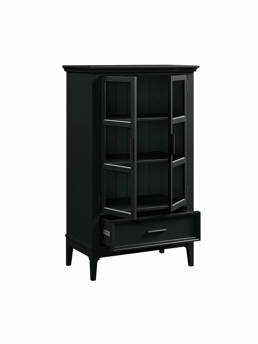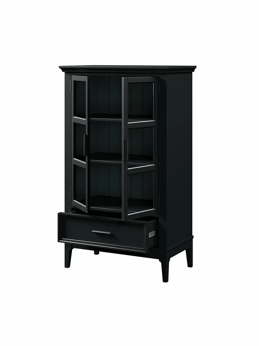 Две распашные застекленные двери и ящик на телескопических шариковых направляющих.