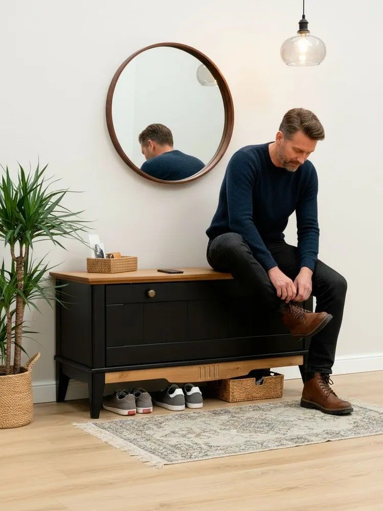 Дополнительная информация по мебели — Тумба для обуви Пенни блэк/антик 24