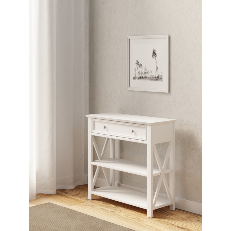 Консоль Форест в белом воске из массива сосны. Выдвижной ящик на роликовых направляющих
