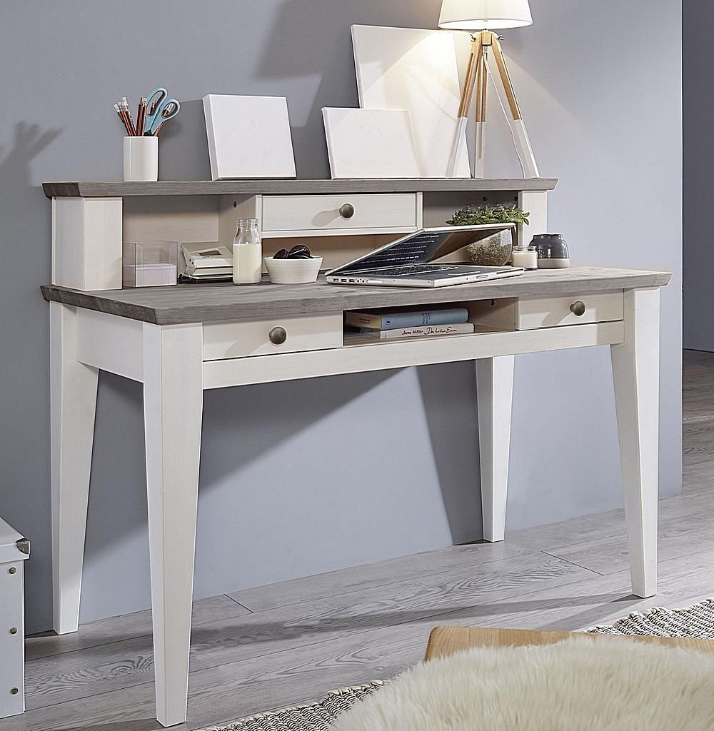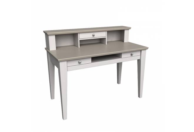 Стол Форест из соснового массива с двумя ящичками и нишей по центру и с надстройкой от белорусской фабрики можно использовать как письменный или туалетный столик.