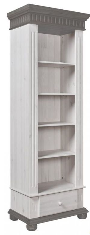 Стеллаж из детской коллекции Хельсинки с ящиком и пятью нишами для размещения игрушек и книг.