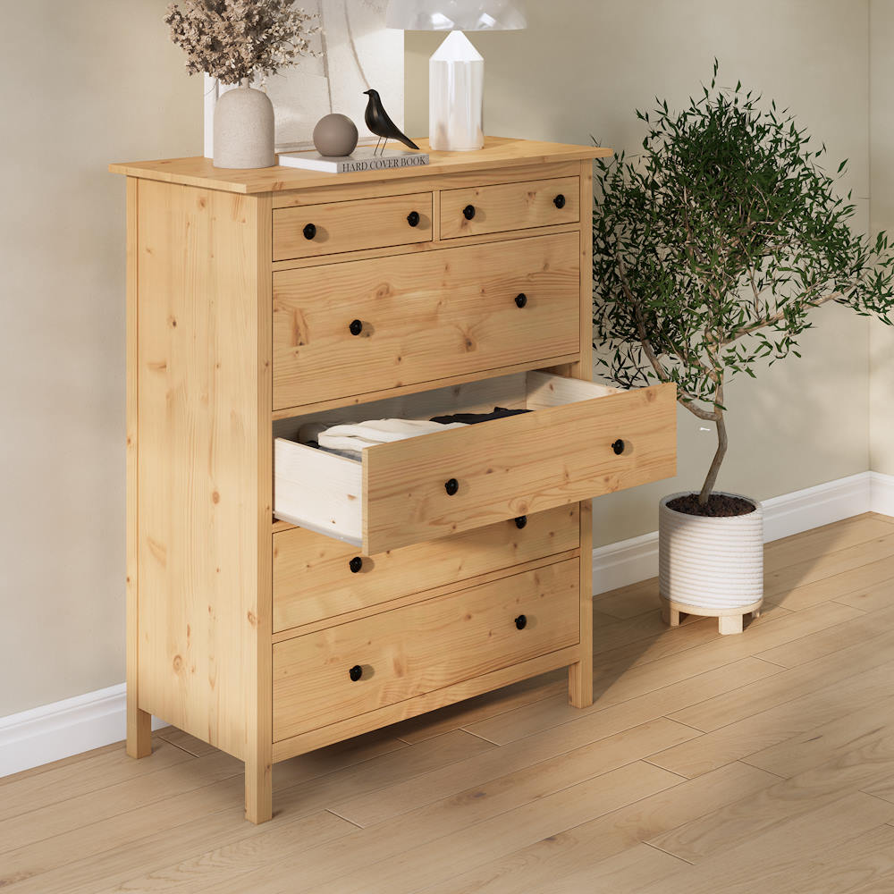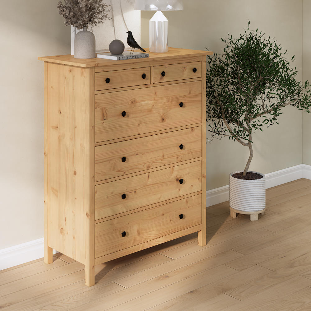 Высокий Комод 6 ящиков ХЕМНЭС (Россия) оригинал светло коричневый. Изготовлен из массива сосны. Дно ящиков и задняя стенка из оргалита.