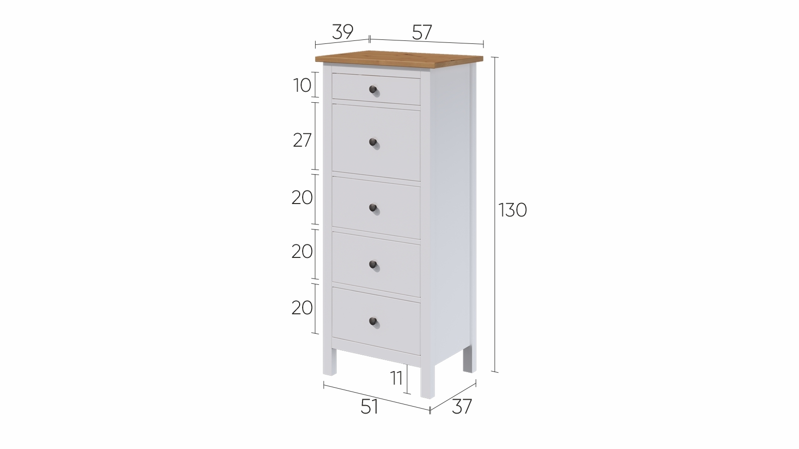 Ширина - 580 мм. Глубина - 440 мм. Высота - 1310 мм. Толщина столешницы - 24 мм. Высота ножек - 113 мм. Внутренние размеры ящиков (ШxГxВ) - 340x280x160 мм.
