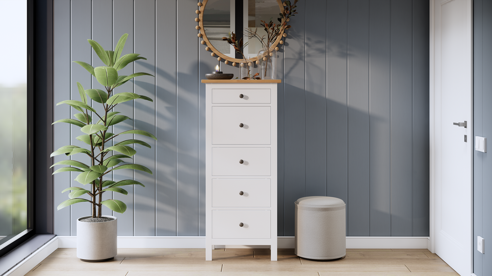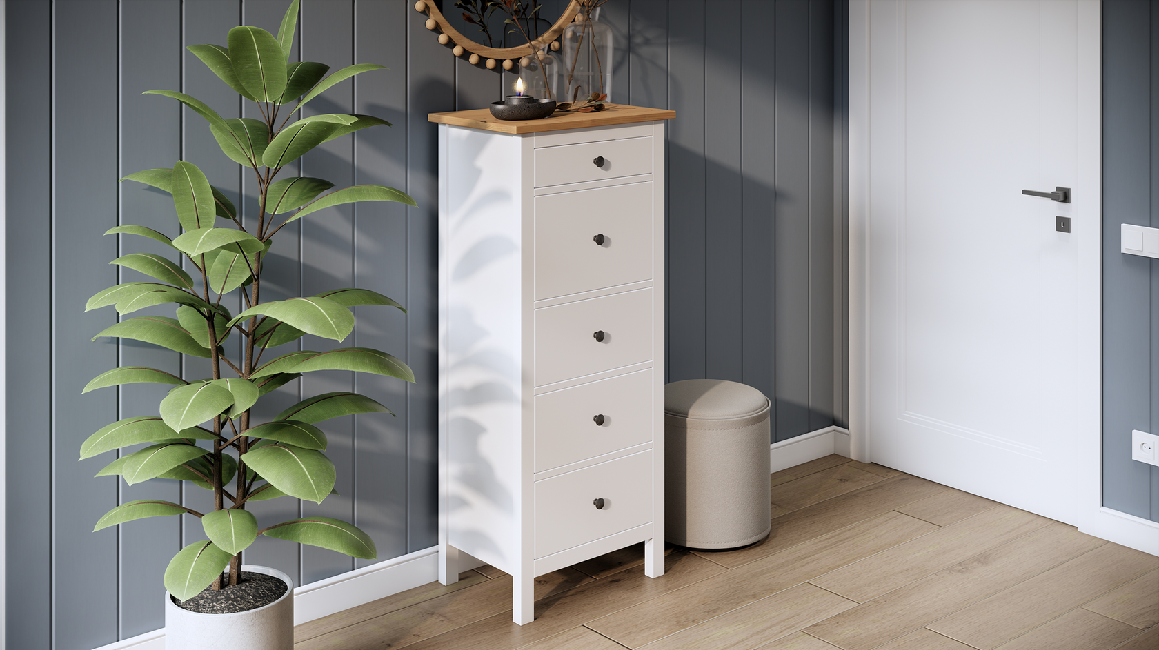 Комод ХЕМНЭС / КЫМОР 5 ящиков белый /светло коричневый
