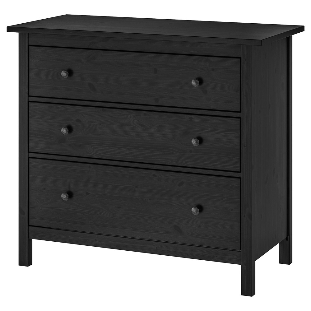 Деревянный Комод с 3 ящиками КАНТРИ (ХЕМНЭС) черный. Изготовлен из массива сосны. Дно ящиков и задняя стенка из оргалита.