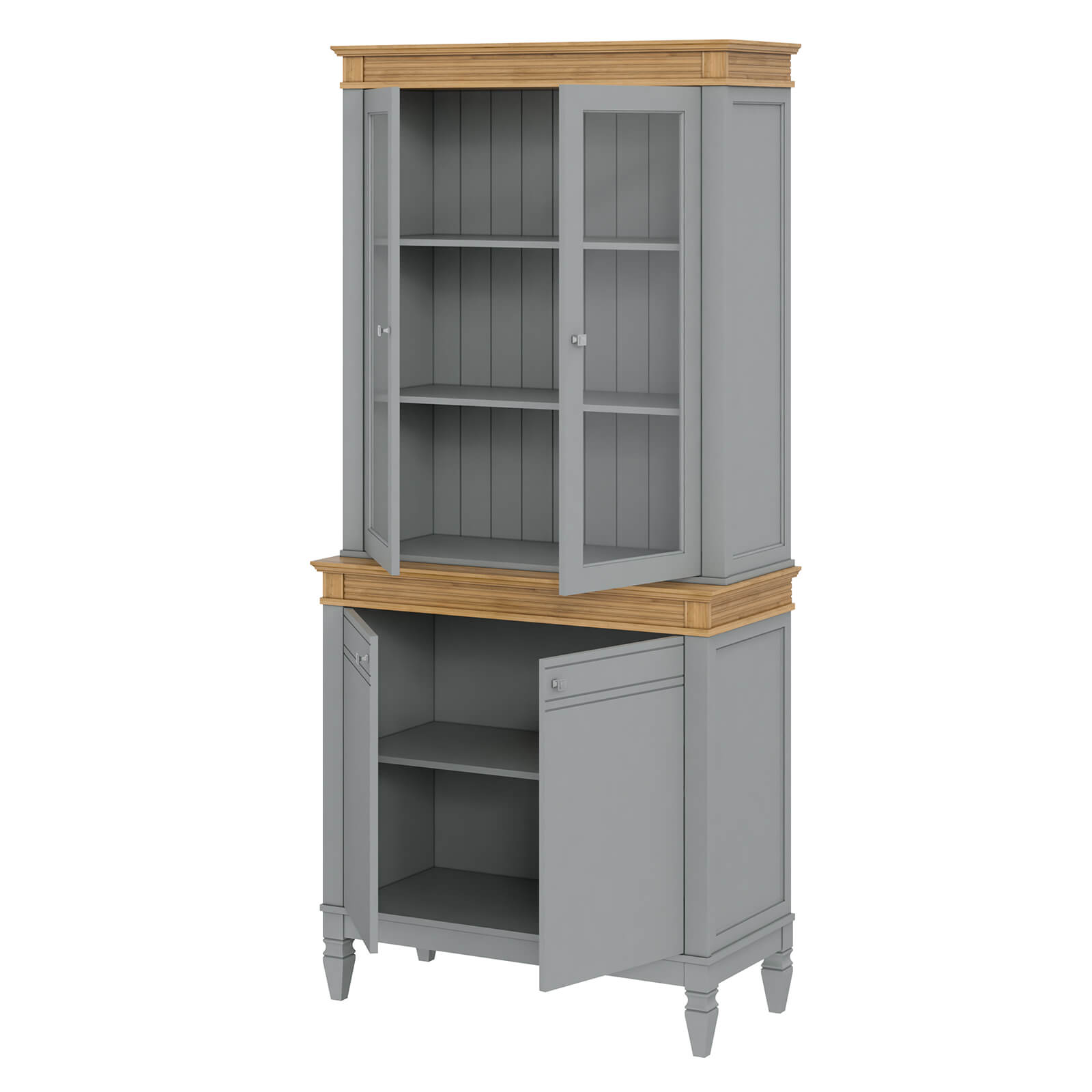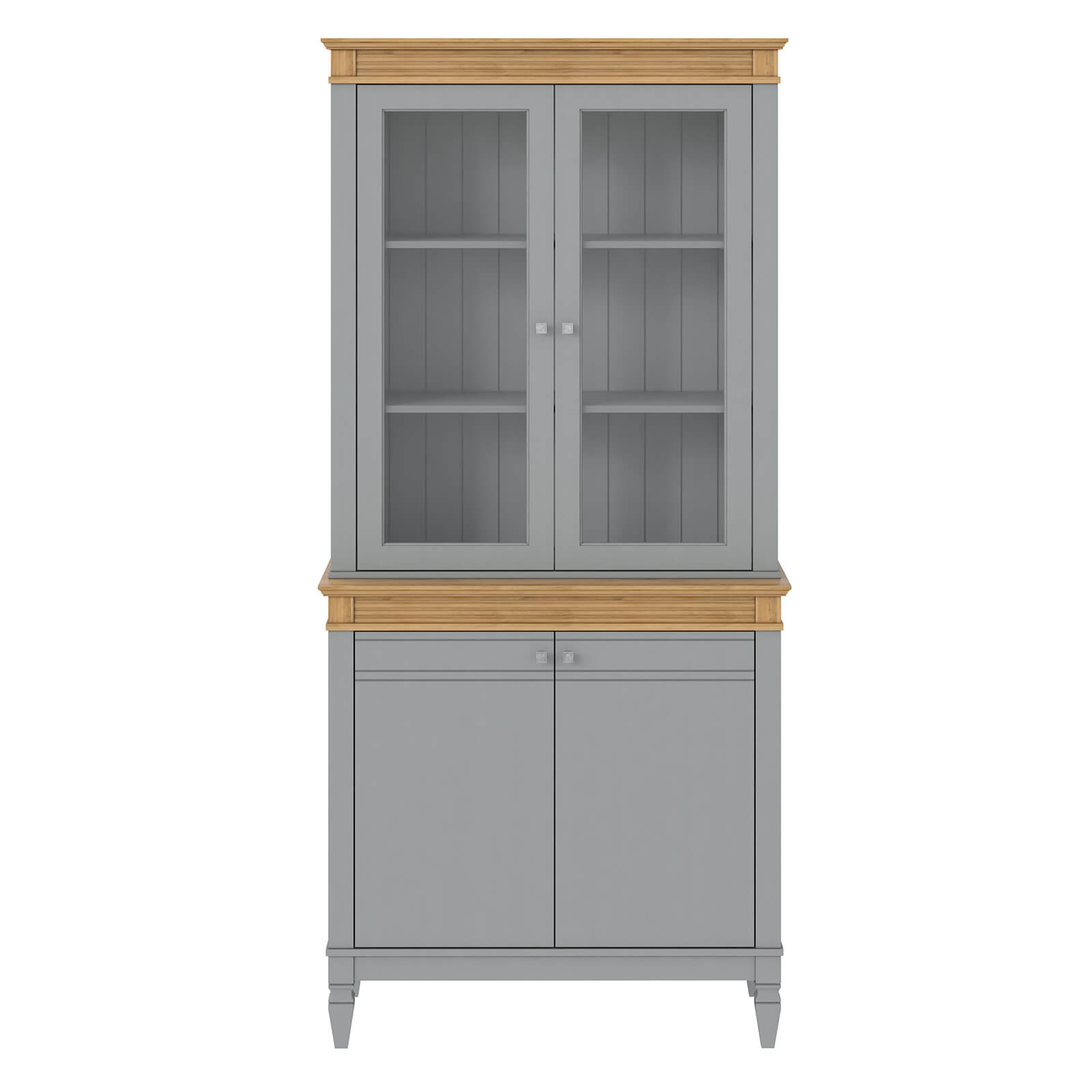 Буфет Ольса 220/220 Серый №7042 + антик №24 изготовлен из массива сосны. В буфете 2 внутренние полки сверху и одна полка внизу, 2 стеклянные дверцу сверху, 2 глухие внизу.
