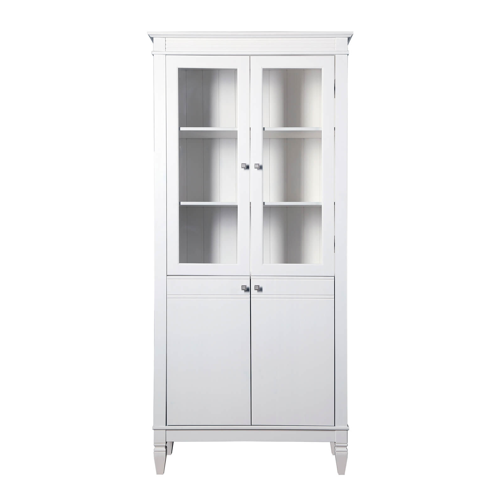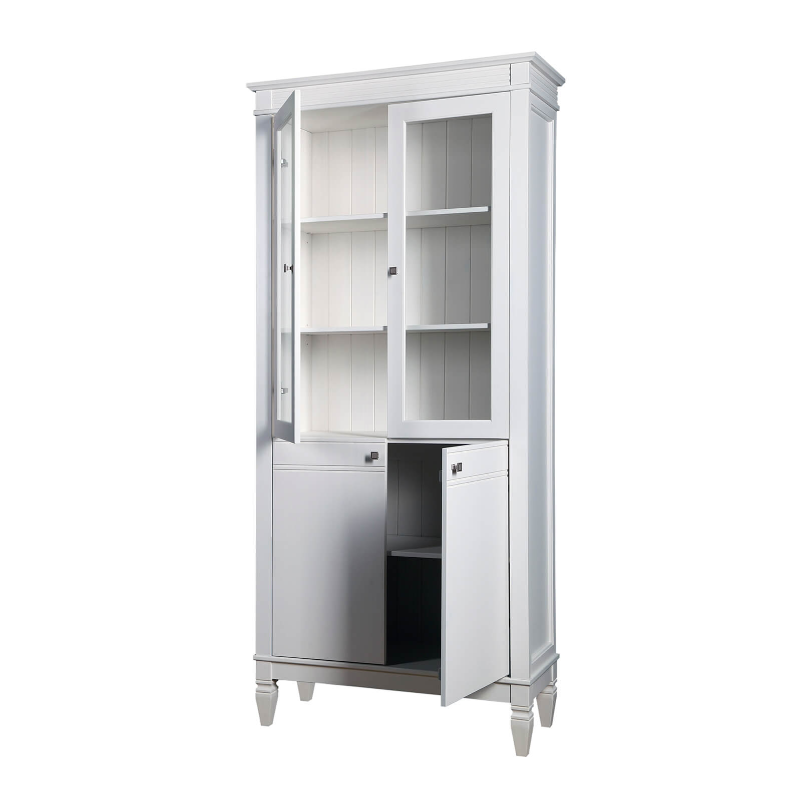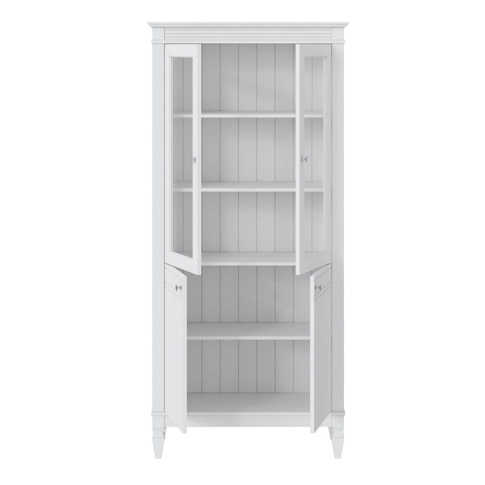 Деревянный стеллаж из сосны / кухонный буфет Ольса-202/200 Белый лак ) массив сосны, 2 стеклянные двери и 2 глухие двери, 4 полки.
