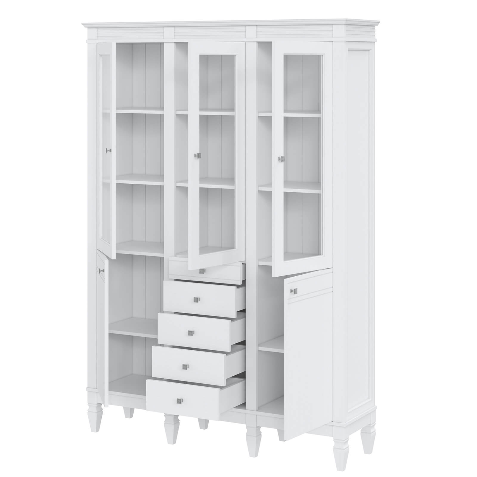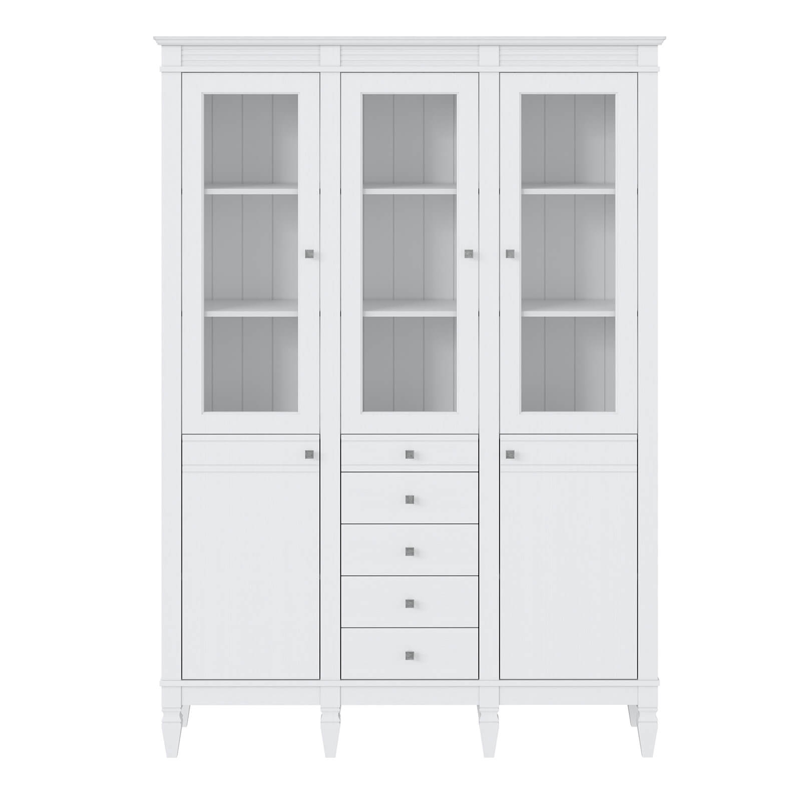 Деревянный стеллаж из сосны / кухонный буфет Ольса-303/214 Белый лак массив сосны, 3 вертикальные секции , 5 дверей и 5 ящиков.